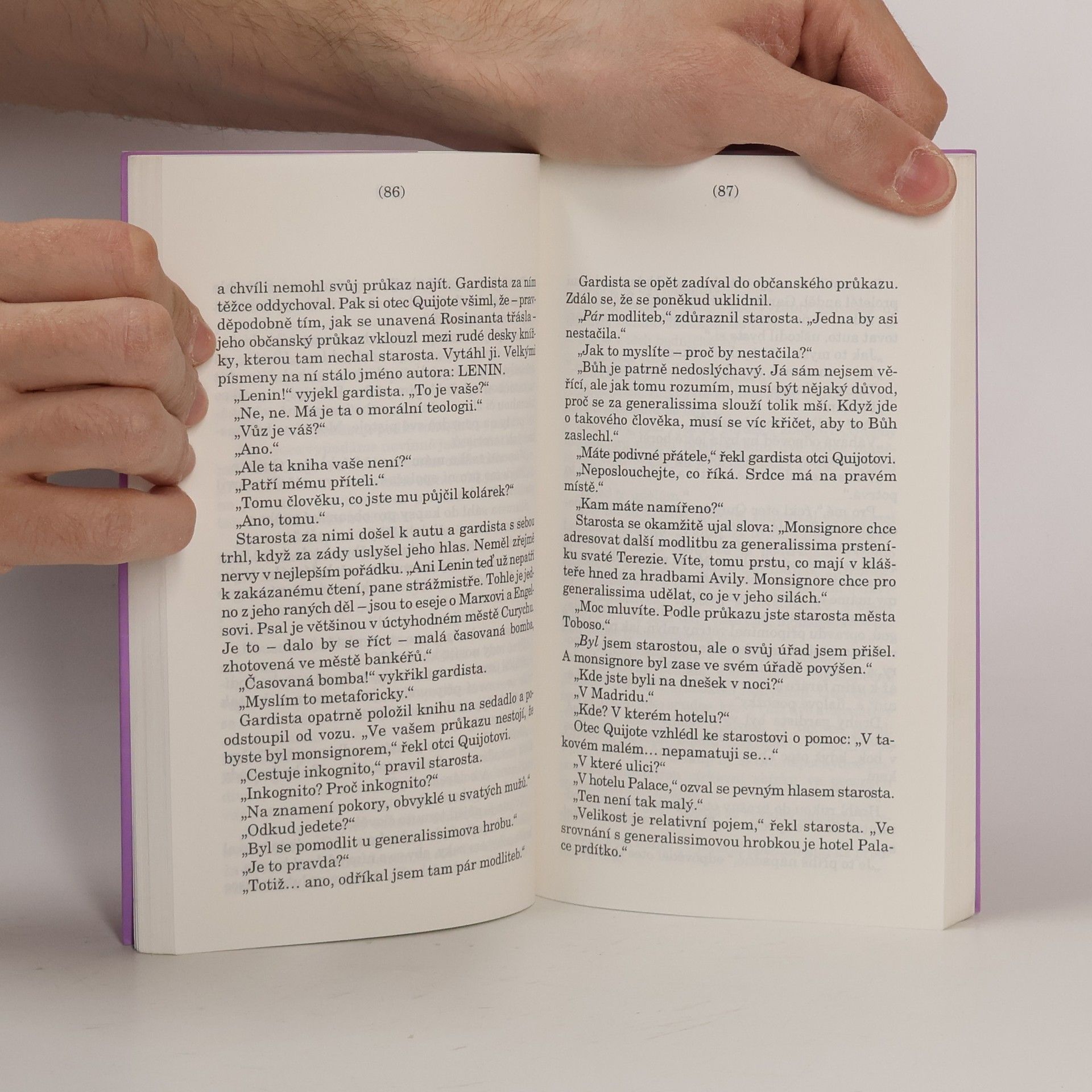 Humorná románová obdoba příběhů Dona Quijota a Sancho Panzy v současném Španělsku. Hrdiny jsou starý katolický farář a jeho přítel, levicový starosta malé vesničky, společně cestující ve starém autě. Oba dogmatici musejí překonat řadu překážek a protivenství, stejně jako jejich literární předchůdce. Ze svých názorových pozic spolu diskutují o morálce, vztazích mezi lidmi i politice. Přes svou názorovou odlišnost však mají k sobě blízko pro svůj upřímný a veskrze kladný vztah k lidem a životu.