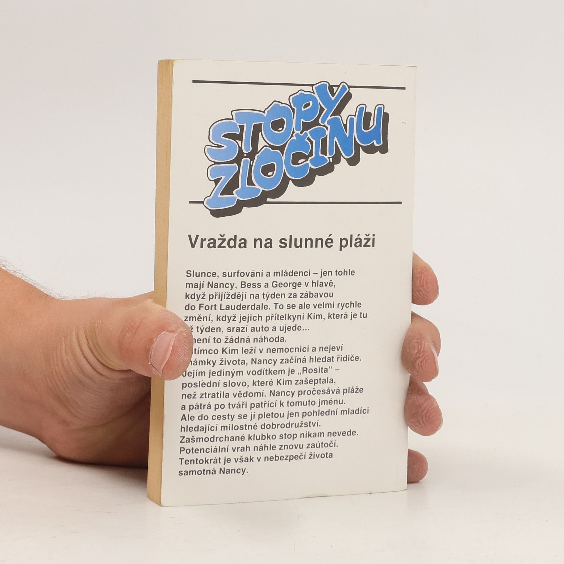 Slunce, surfování a mládenci - jen tohle mají Nancy, Bess a George v hlavě, když přijíždějí na týden za zábavou do Fort Lauderdale. To se ale velmi rychle změní, když jejich přítelkyni Kim, která je tu již týden, srazí auto a ujede... a není to žádná náhoda. Zatímco Kim leží v nemocnici a nejeví známky života, Nancy začíná hledat řidiče. Jejím jediným vodítkem je "Rosita" - poslední slovo, které Kim zašeptala, než ztratila vědomí. Nancy pročesává pláže a pátrá po tváři patřící k tomuto jménu. Ale do cesty se jí pletou jen pohlední mladíci hledající milostné dobrodružství. Zašmodrchané klubko stop nikam nevede. Potenciální vrah náhle znovu zaútočí. Tentokrát je však v nebezpečí života samotná Nancy.
