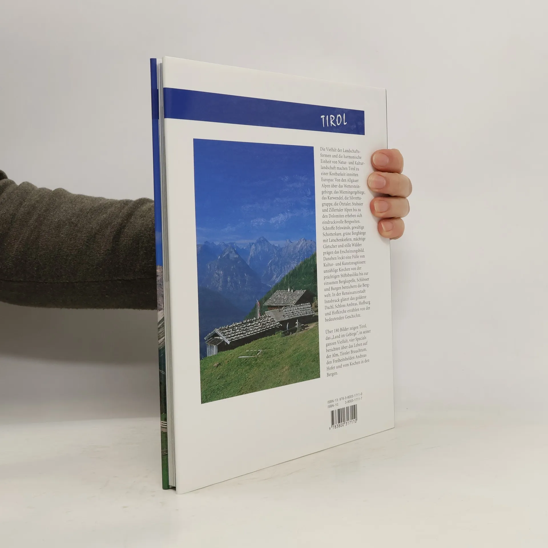 Die Vielfalt der Landschaftsformen und die harmonische Einheit von Natur- und Kulturlandschaft machen Tirol zu einer Kostbarkeit inmitten Europas: Von den Allgäuer Alpen über das Wettersteingebirge, das Miemingergebirge, das Karwendel, die Silvrettagruppe, die Ötztaler, Stubaier und Zillertaler Alpen bis zu den Dolomiten erheben sich eindrucksvolle Bergwelten. Schroffe Felswände, gewaltige Schotterkare, grüne Berghänge mit Latschenkiefern, mächtige Gletscher und stille Wälder prägen das Erscheinungsbild. Daneben lockt eine Fülle von Kultur- und Kunstzeugnissen: unzählige Kirchen von der prächtigen Stiftsbasilika bis zur einsamen Bergkapelle, Schlösser und Burgen bereichern die Bergwelt. In der Renaissancestadt Innsbruck glänzt das goldene Dachel, Schloss Ambras, Hofburg und Hofkirche erzählen von der bedeutenden Geschichte. Circa 200 Bilder zeigen Tirol, das „Land im Gebirge“, in seiner ganzen Vielfalt, vier Specials berichten über Tiroler Brauchtum, kulinarischen Spezialitäten, das Leben auf der Alm und über den Freiheitshelden Andreas Hofer.