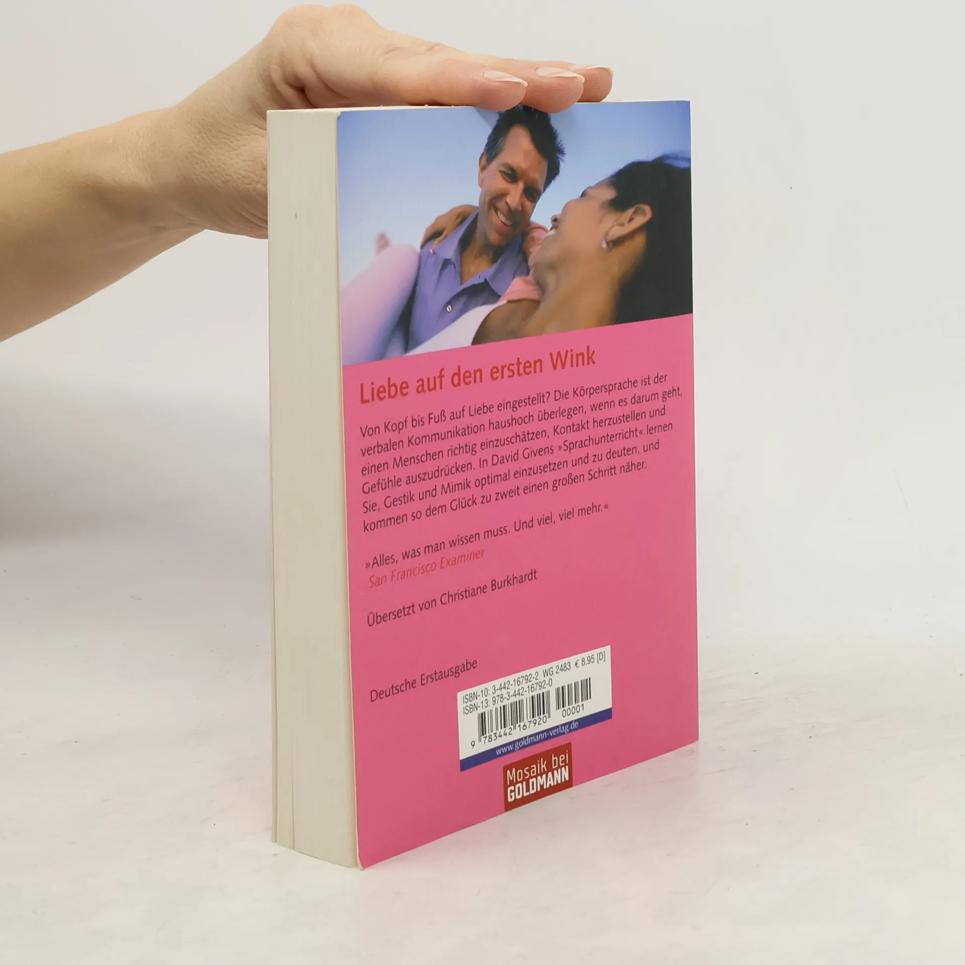 Liebe auf den ersten Wink: Gesten sagen mehr als tausend Worte. Von Kopf bis Fuß auf Liebe eingestellt? Die Körpersprache ist der verbalen Kommunikation haushoch überlegen, wenn es darum geht, einen Menschen richtig einzuschätzen, Kontakt herzustellen und Gefühle auszudrücken. Wer dank David Givens „Sprachunterricht“ Gestik und Mimik optimal einzusetzen und zu deuten weiß, kommt dem Glück zu zweit näher. Mit spannenden Beispielen aus Kunst, Literatur, Film und Tierwelt.