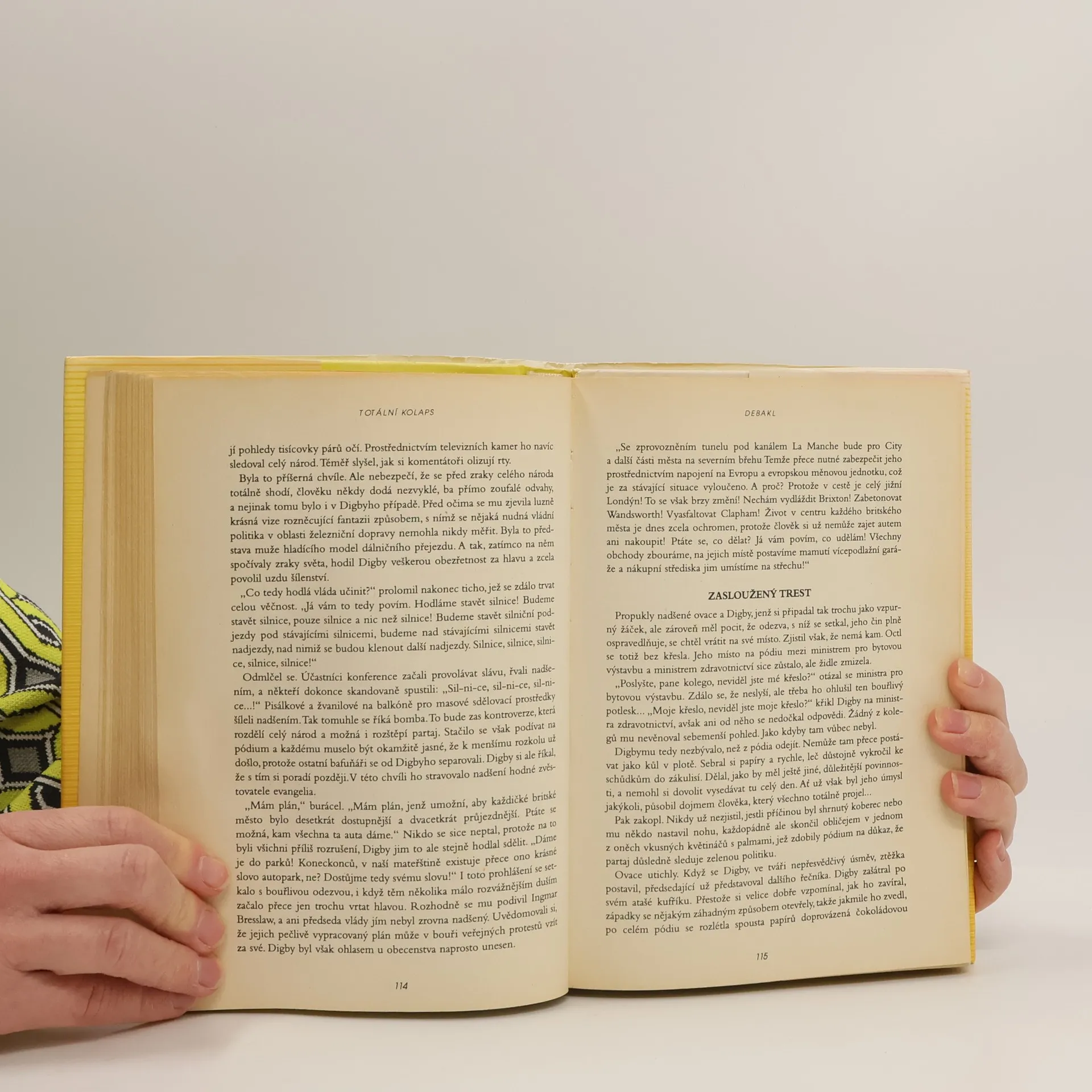 Brilantní bláznivá parodie na reklamou zhlouplý svět Totální kolaps je fenomén, k němuž dochází, když hustota dopravy dosáhne takových rozměrů, že se město zastaví. Zácpu nelze uvolnit, protože proudy navzájem se blokujících vozidel nemají kam uhnout. Takové je vyvrcholení humoristicko satirického románu, na jehož počátku stojí vysněný vynález motoru spalujícího vodík, jímž tělesně postižený vědec chce ulehčit život své přítelkyni upoutané na invalidní vozík. Vynález se však nehodí do krámu výrobkům automobilů a tak zosnují ďábelský plán, jak se ukradeného patentu zbavit tím, že ho za největší odstupné v dějinách odprodají státům produkujících ropu, které by výrobou vozu s takovým motorem přišly o pohádkové zisky. Nikdo však nepočítá s houževnatostí a odvahou životem zocelené vozíčkářky, kterou automobil připravil o možnost chodit.