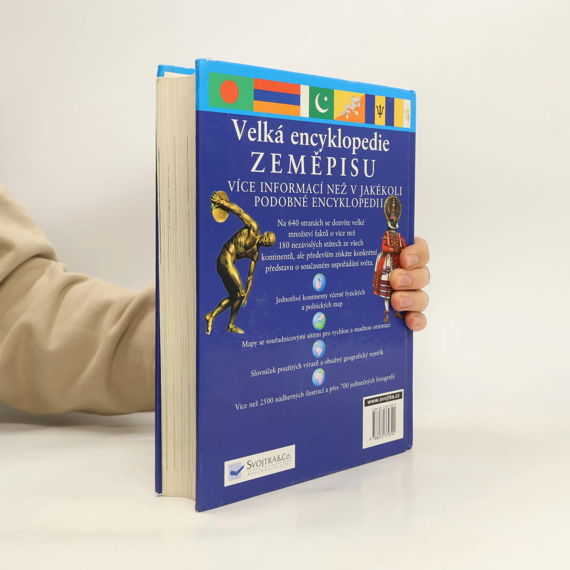 Na 640 stranách se čtenář dozví velké množství faktů o více než 180 nezávislých státech ze všechn kontinentů, ale především získá konkrétní představu o současném uspořádání světa. Jednotlivé kontinenty jsou včetně fyzických a politických map. Jsou zde mapy se souřadnicovými sítěmi pro rychlou a snadnou orientaci. Je zde slovníček použitých výrazů a obsažný geografický rejstřík. Kníha obsahuje více než 2 500 nádherných ilustrací a přes 700 jedinečných fotografií.