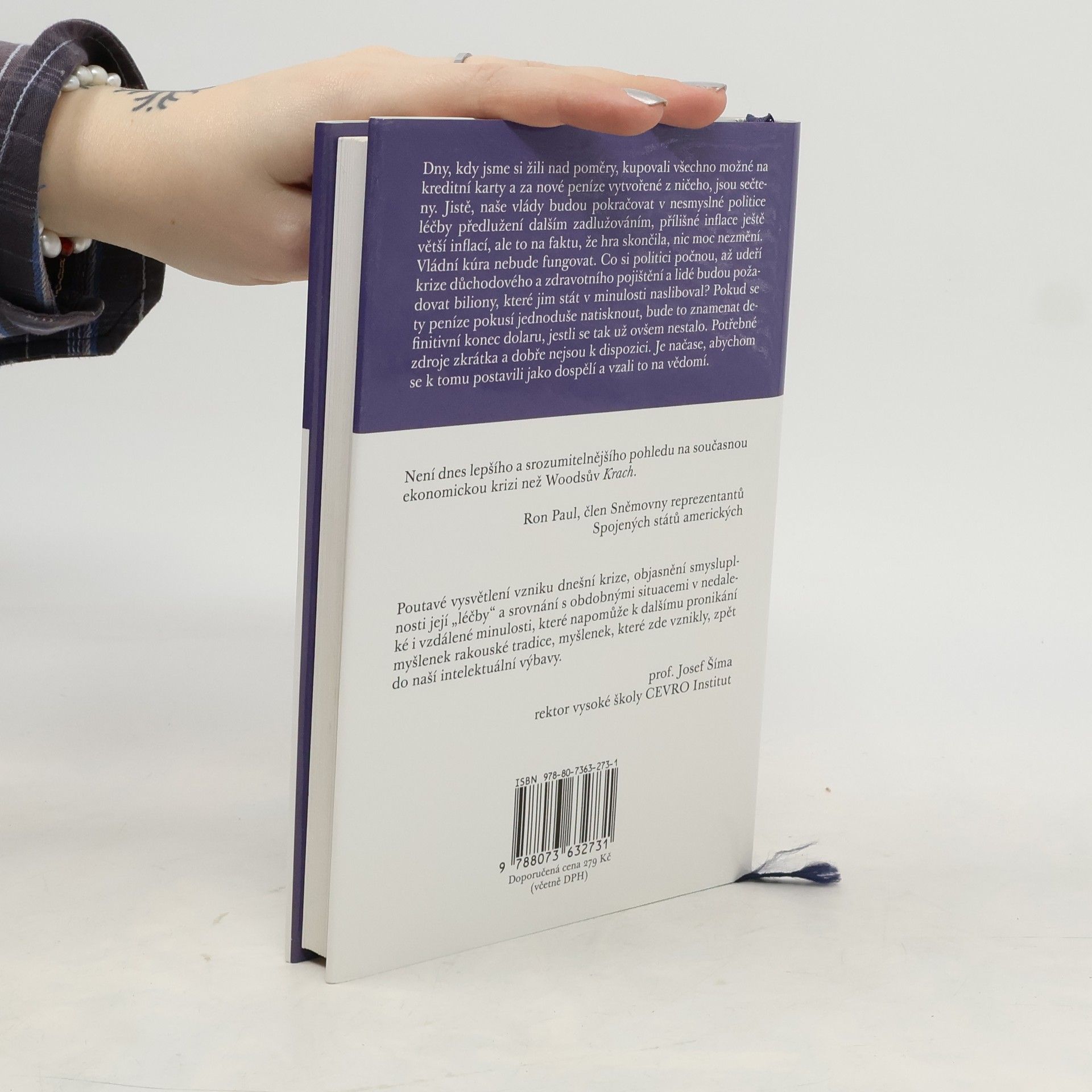 Podtitul: Příčiny krize a nápravná opatření, která ji jen zhoršují Kniha o tom, co se vlastně světovému hospodářství v posledních letech přihodilo a co s tím máme dělat, již vyšlo mnoho (přinejmenším v zahraničí), a ještě více jich nepochybně vyjde. Jejich autoři však většinou podávají pouze mainstreamové vysvětlení, které lze velmi zhruba shrnout takto: bylo málo kontroly a mnoho svobody. Řešení pak už jen různými prostředky tento nedostatek napravují. Thomas E. Woods jr. k architektům řešení současné krize přistupuje nikoli s nábožnou úctou a bázní, jaké se jim dostává ve Washingtonu a v televizi, nýbrž nebojácně a zdravě kriticky, čehož drtivá většina údajně nezávislých komentátorů a akademiků není schopna. Kniha Krach provede laického čtenáře v několika krátkých kapitolách celou řadou témat, která v našich odborných i veřejných debatách dlouho chyběla. Autor mimo jiné vysvětluje základní principy fungování bankovnictví, podstatu inflace a především rakouskou teorii hospodářského cyklu. Předkládá přesvědčivý a racionální popis toho, jak jsme se dostali tam, kde dnes jsme. Pouze pokud správně ukážeme na skutečné příčiny současného debaklu, můžeme navrhnout řešení, která nás dovedou k nápravě, místo aby jen prodloužila naši agónii. Předmluvu napsal Josef Šíma Vydání první Celý originální název: Meltdown. A Free-Market Look at Why the Stock Market Collapsed, the Economy Tanked, and Government Bailouts