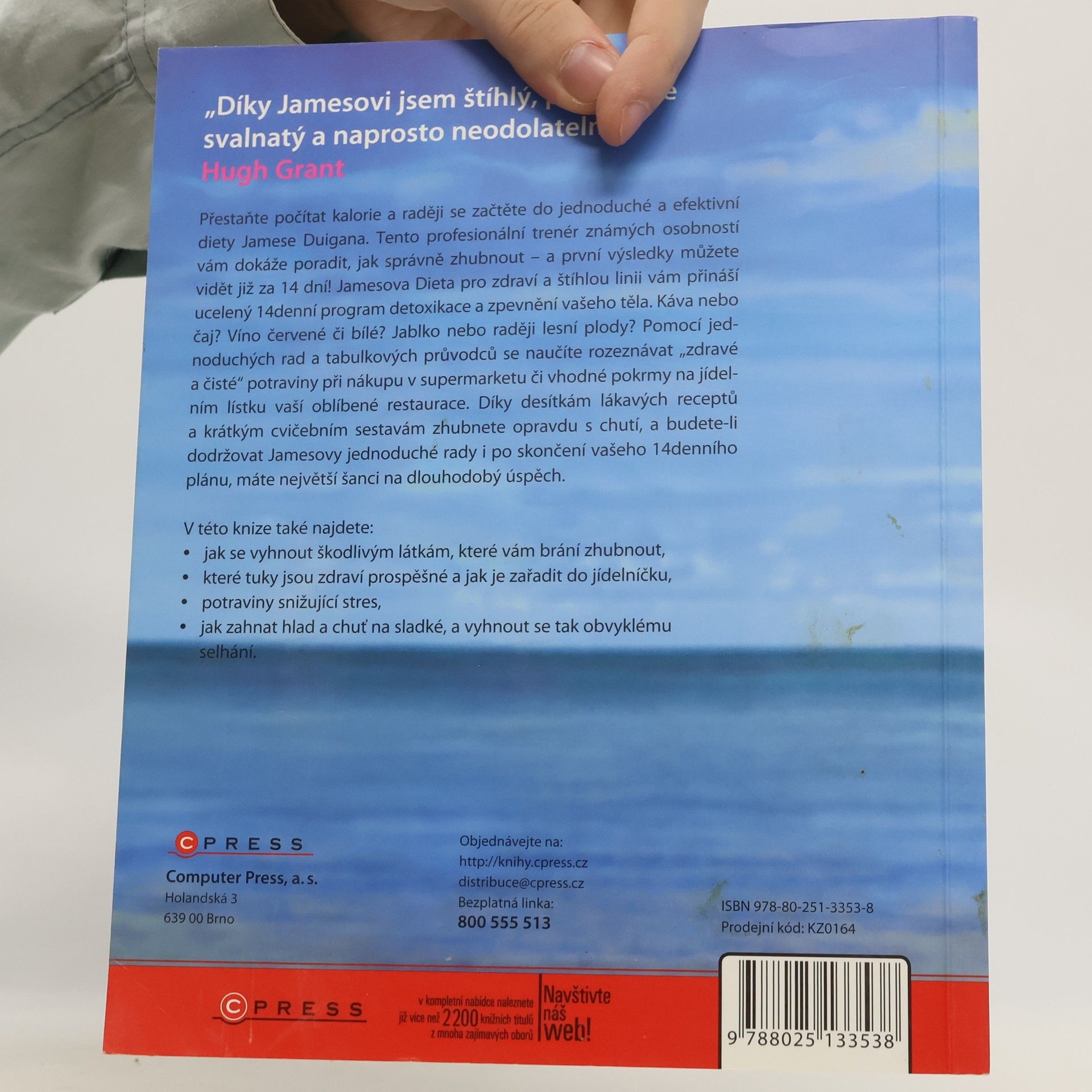 Očistná dieta pro zdravou a štíhlou linii. Dieta Jamese Duigana přináší ucelený 14denní program detoxikace organismu a zpevnění těla. Pomocí jednoduchých rad a tabulkových průvodců se čtenář naučí rozpoznávat „zdravé a čisté“ potraviny při nákupu v supermarketu či vhodné pokrmy na jídelním lístku oblíbené restaurace. Díky desítkám lákavých receptů a krátkým cvičebním sestavám lze zhubnout opravdu s chutí a na dlouho.