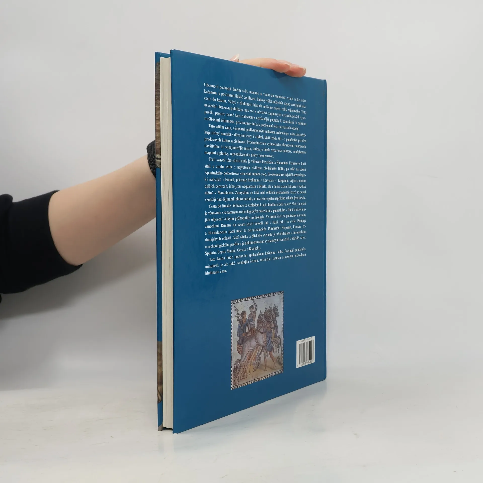 Chceme-li pochopit dnešní svět, musíme se vrátit do minulosti a k počátkům lidské civilizace. Tento výlet do historie může být stejně vzrušující jako cesta do kosmu, neboť v hlubinách minulosti nalezneme mnoho zajímavého. Publikace nás zve k návštěvě archeologických vykopávek, kde objevíme podněty k zamyšlení a rozšíření vědomostí o nejstarších obdobích. Ediční řada se zaměřuje na podivuhodné archeologické nálezy a zprostředkovává přímý kontakt s dávnými časy a lidmi, kteří tehdy žili. Prostřednictvím obrazového doprovodu navštívíme fascinující místa, včetně nákresů, map a plánků. Třetí svazek se věnuje Etruskům a Římanům. Etruskové, zakladatelé jedné z největších civilizací předřímské Itálie, zanechali na Apeninském poloostrově mnoho stop, které prozkoumáme v archeologických nalezištích jako Cerveteri a Tarquinia. Zamyslíme se také nad záhadami, včetně tajemství jejich jazyka. Cesta do římské civilizace je rozdělena na dvě části; první se zaměřuje na významná archeologická naleziště v Římě a jejich objevení, druhá na stopy Římanů v jejich koloniích, včetně Pompejí a Herkulanea. Historie a archeologie těchto oblastí jsou dokumentovány významnými nálezy. Publikace bude fascinujícím společníkem pro všechny, kdo mají zájem o památky minulosti a chtějí se ponořit do hlubin času.