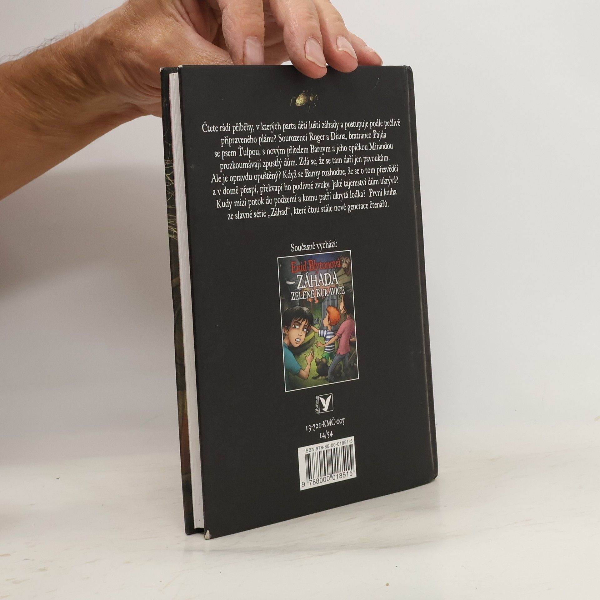 Prázdninová dobrodružství čtyř dětí ve starém opuštěném domě. První kniha slavné série „Záhad“ nás zavede na anglický venkov, kde parta nerozlučných přátel prozkoumává tajemný zpustlý dům, obrostlý břečťanem. Zprvu se zdá, že v domě se daří jen pavoukům, ale je opravdu opuštěný? Když se Barny rozhodne, že se o tom přesvědčí a v domě přespí, překvapí ho podivné zvuky. Jaké tajemství dům ukrývá? Kudy mizí potok do podzemí a komu patří ukrytá loďka? Sourozenci Roger s Dianou, jejich bratranec Pajda a kamarád Barny se rozhodnou záhadě přijít na kloub.