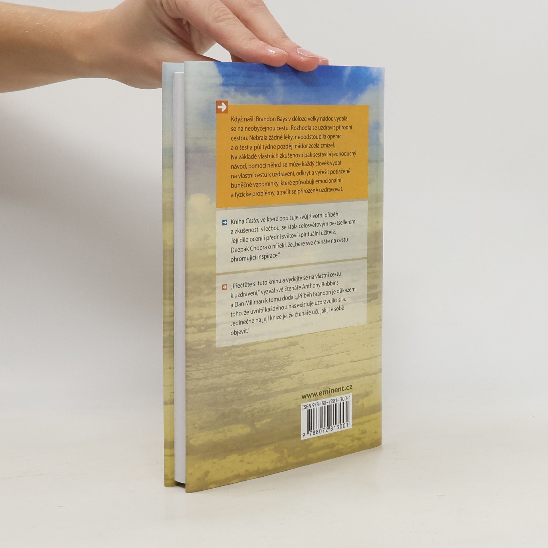 Když našli Brandon Bays v děloze velký nádor, vydala se na neobyčejnou cestu. Rozhodla se uzdravit přírodní cestou. Nebrala žádné léky, nepodstoupila operaci a o šest a půl týdne později nádor zcela zmizel. Na základě vlastních zkušeností pak sestavila jednoduchý návod, pomocí něhož se může každý člověk vydat na vlastní cestu k uzdravení, odkrýt a vyřešit potlačené buněčné vzpomínky, které způsobují emocionální a fyzické problémy, a začít se přirozeně uzdravovat. Kniha Cesta, ve které popisuje svůj životní příběh a zkušenosti s léčbou, se stala celosvětovým bestsellerem. Její dílo ocenili přední světoví spirituální učitelé. Deepak Chopra o ní řekl, že „bere své čtenáře na cestu ohromující inspirace.“ „Přečtěte si tuto knihu a vydejte se na vlastní cestu k uzdravení,“ vyzval své čtenáře Anthony Robbins a Dan Millman k tomu dodal: „Příběh Brandon je důkazem toho, že uvnitř každého z nás existuje uzdravující síla. Jedinečné na její knize je, že čtenáře učí, jak ji v sobě objevit.“