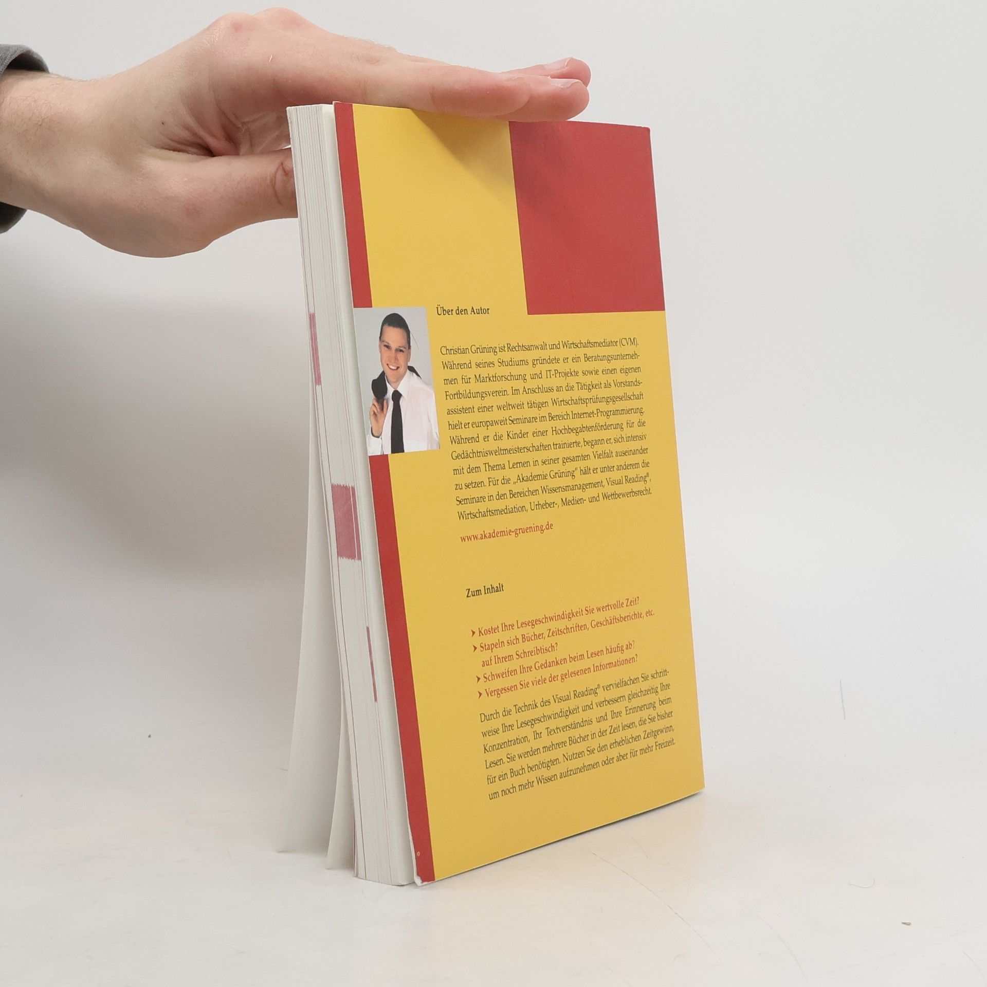 Das Leben ist ein ständiger Lernprozess. Ob für Prüfungen, berufliche oder private Weiterbildung: Niemand kommt daran vorbei, sich ständig neues Wissen anzueignen. Nach der Arbeit mit diesem Buch wird man schneller - und viel wichtiger - mit besserem Verständnis und einer besseren Erinnerung lesen. Das Buch ist folgendermaßen aufgebaut: Steigerung 1. der Lesegeschwindigkeit (Speed Reading/Visual Reading) 2. der Konzentration (Stressmanagement/„entspannte Wachheit“/Motivation) 3. des Verständnisses beim Lesen (Mind Mapping/Visual Cards) 4. der Erinnerung beim Lesen (Gedächtnis-Strategien & Mnemotechnik) Eine Reise bzw. der Aufstieg zu einem Gipfel stehen bildhaft für das Lernbuch und die Arbeitstechnik, die vermittelt werden soll. Schrittweise und übersichtlich wird der Leser über Übungen, Tipps und Beispiele zum Ziel geführt - hin zu einem tollen Ausblick: auf zukünftige Leseerfahrungen.