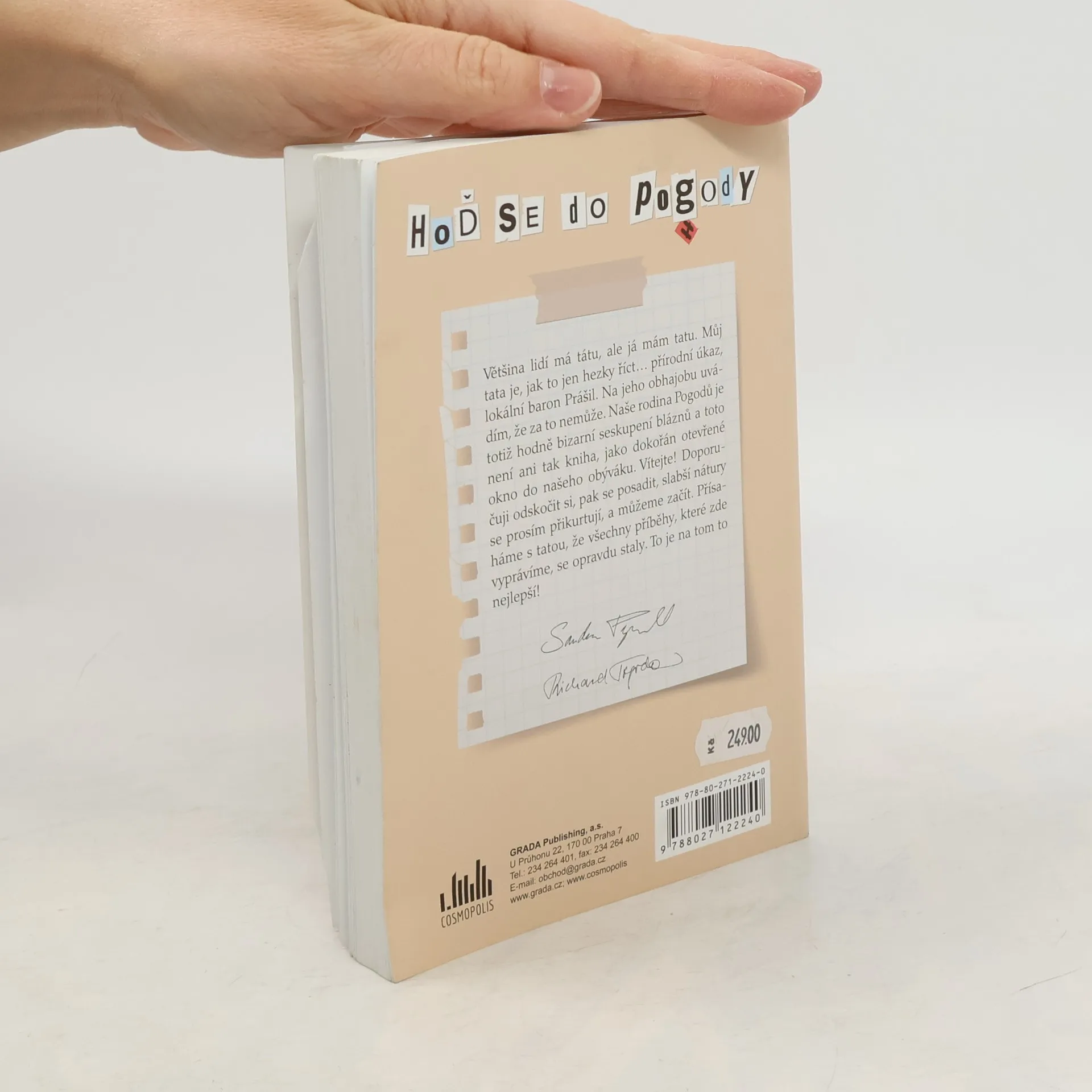 Většina lidí má tátu, ale já mám tatu. Můj tata je, jak to jen hezky říct… přírodní úkaz, lokální baron Prášil. Na jeho obhajobu uvádím, že za to nemůže. Naše rodina Pogodů je totiž hodně bizarní seskupení bláznů a toto není ani tak kniha, jako dokořán otevřené okno do našeho obýváku. Vítejte! Doporučuji odskočit si, pak se posadit, slabší nátury se prosím přikurtují, a můžeme začít. Přísaháme s tatou, že všechny příběhy, které zde vyprávíme se opravdu staly. To je na tom to nejlepší!