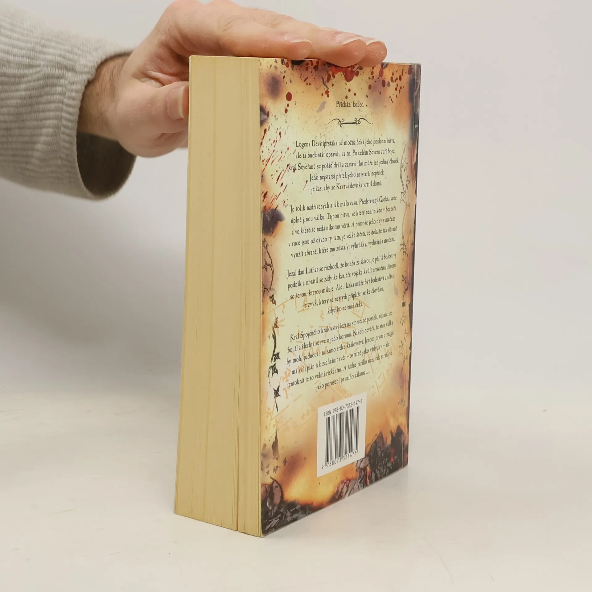 Přichází konec. Logena Devítiprsťáka už možná čeká jeho poslední bitva, ale ta bude stát za to. Po celém Severu zuří boje, král Seveřanů se pořád drží a zastavit ho může jen jediný člověk. Jeho nejstarší přítel, jeho nejstarší nepřítel: je čas, aby se Krvavá devítka vrátil domů. Je tolik nadřízených a tak málo času. Představený Glokta vede úplně jinou válku. Tajnou bitvu, ve které není nikdo v bezpečí a ve které se nedá nikomu věřit. A protože jeho dny s mečem v ruce jsou už dávno ty tam, je velké štěstí, že dokáže tak účinně využít zbraně, které mu zůstaly: výhrůžky, vydírání a mučení. Jezal dan Luthar se rozhodl, že honba za slávou je příliš bolestivý podnik a obrátil se zády ke kariéře vojáka kvůli prostému životu se ženou, kterou miluje. Ale i láska může být bolestivá a sláva je zvyk, který se nestydí připlížit se ke člověku, když ho nejmíň čeká. Král Spojeného království leží na smrtelné posteli, rolníci se bouří a šlechta se rve o jeho korunu. Nikdo nevěří, že stín války hrozí padnout na samo srdce Království. Jenom První z mágů má svůj plán, jak zachránit svět – ostatně jako vždycky – ale tentokrát je to velmi riskantní. A žádné riziko není tak strašlivé jako porušení Prvního zákona …