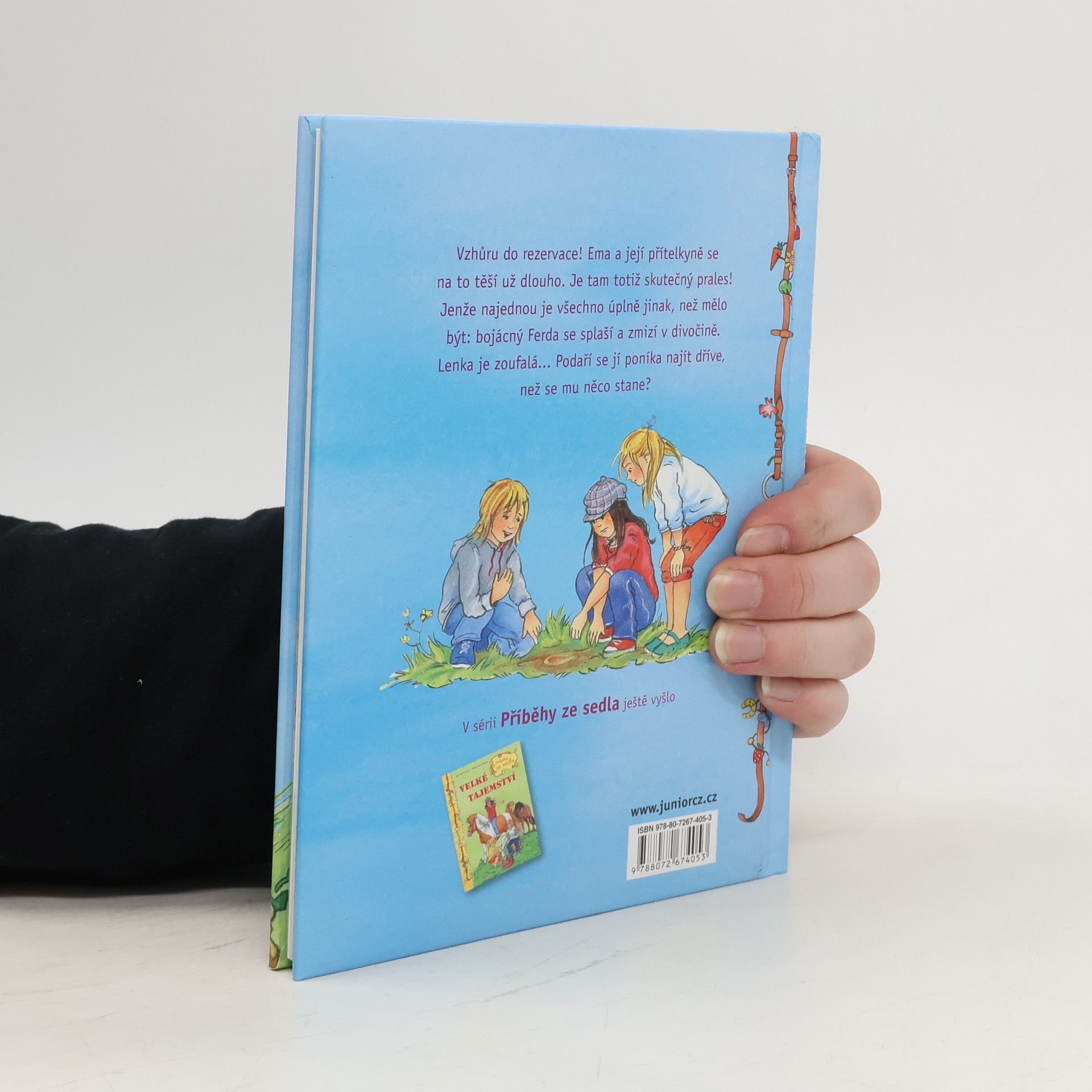 Příběhy ze sedla Vzhůru do rezervace! Ema a její přítelkyně se na to těší už dlouho. Je tam totiž skutečný prales! Jenže najednou je všechno úplně jinak, než mělo: bojácný Ferda se splaší a zmizí v divočině. Lenka je zoufalá... Podaří se jí poníka najít dříve, než se mu něco stane?