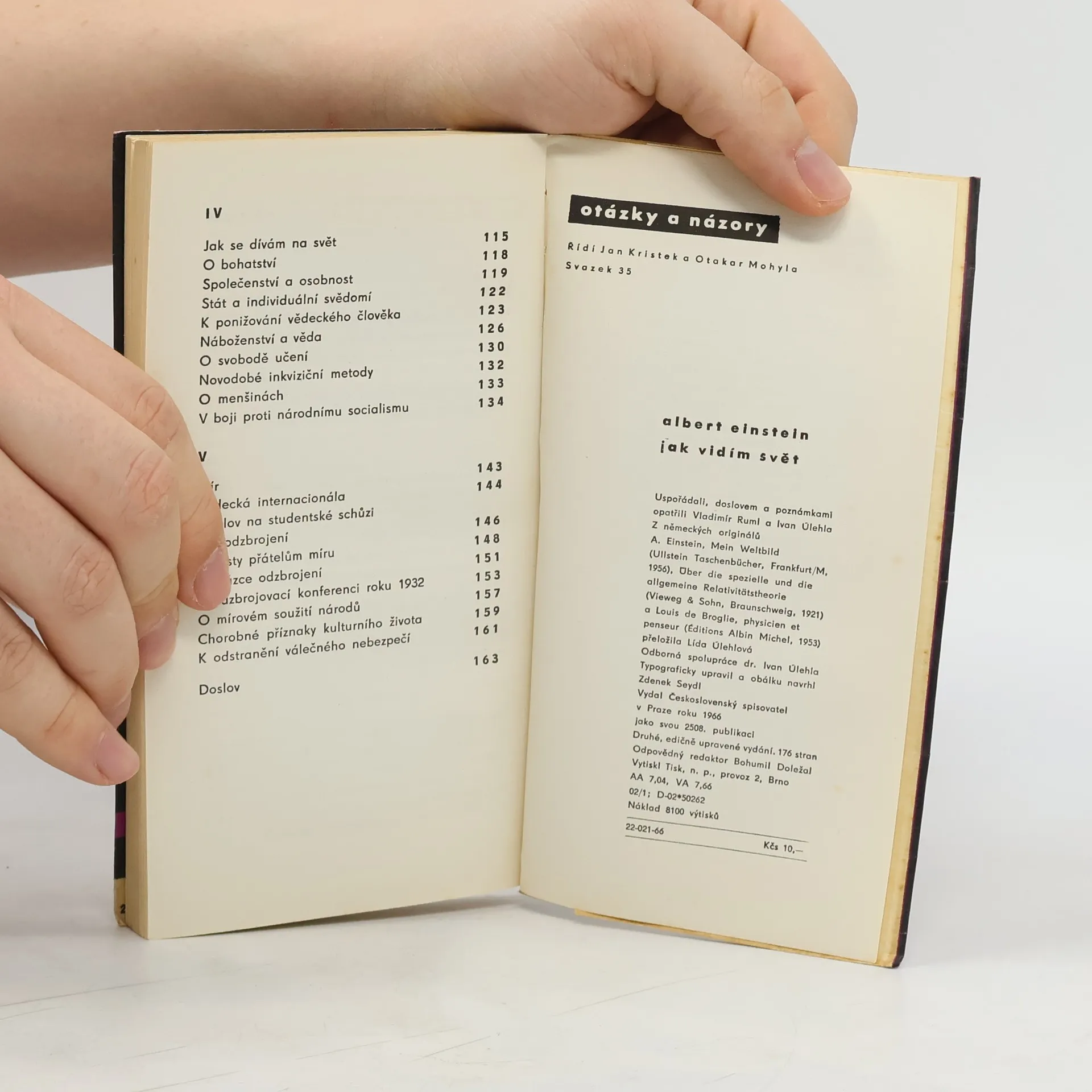 Výbor z bohatého díla geniálního fyzika dává nahlédnout do jeho komplikovaného duševního světa nejen v oblasti fyziky, ale i gnoseologie, filosofie, sociologie a politiky. Ukazuje, že Einsteinův filosofický idealismus byl bohatě vyvážen jeho bojem za mír a socialistickým humanismem.