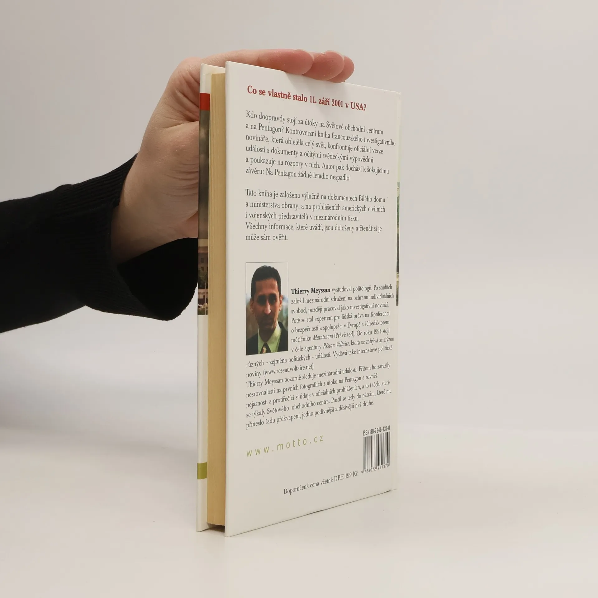 Co se vlastně stalo 11. září 2001 v USA? Kdo doopravdy stojí za útoky na Světové obchodní centrum a na Pentagon? Kontroverzní kniha francouzského investigativního novináře, která obletěla celý svět, konfrontuje oficiální verze událostí s dokumenty a očitými svědeckými výpověďmi a poukazuje na rozpory v nich. Autor pak dochází k šokujícímu závěru: Na Pentagon žádné letadlo nespadlo! Tato kniha je založena výlučně na dokumentech Bílého domu a ministerstva obrany, a na prohlášeních amerických civilních i vojenských představitelů v mezinárodním tisku. Všechny informace, které uvádí, jsou doloženy a čtenář si je může sám ověřit.