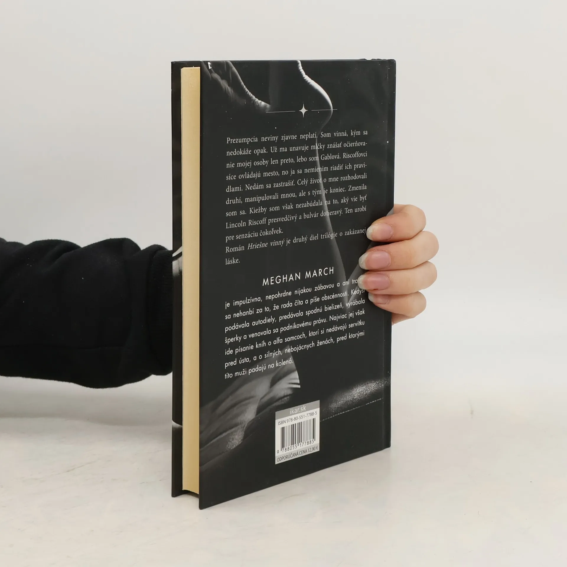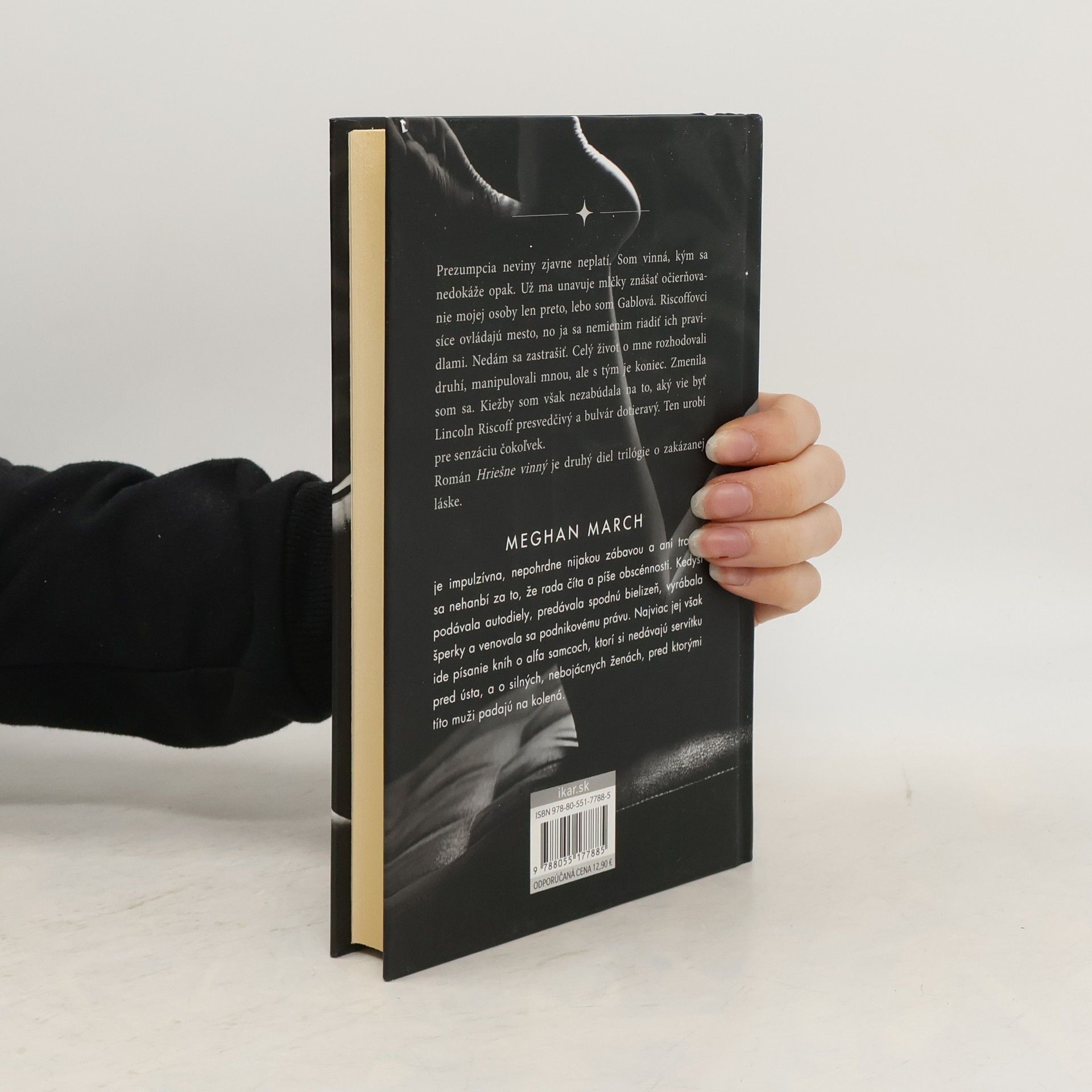 Prezumpcia neviny zjavne neplatí. Som vinná, kým sa nedokáže opak. Už ma unavuje mlčky znášať očierňovanie mojej osoby len preto, lebo som Gablová. Riscoffovci síce ovládajú mesto, no ja sa nemienim riadiť ich pravidlami. Nedám sa zastrašovať. Celý život o mne rozhodovali druhí, manipulovali mnou, ale s tým je koniec. Zmenila som sa. Kiežby som však nezabúdala na to, aký vie byť Lincoln Riscoff presvedčivý a bulvár dotieravý. Ten urobí pre senzáciu čokoľvek. Román Hriešne vinný je druhý diel trilógie o zakázanej láske.