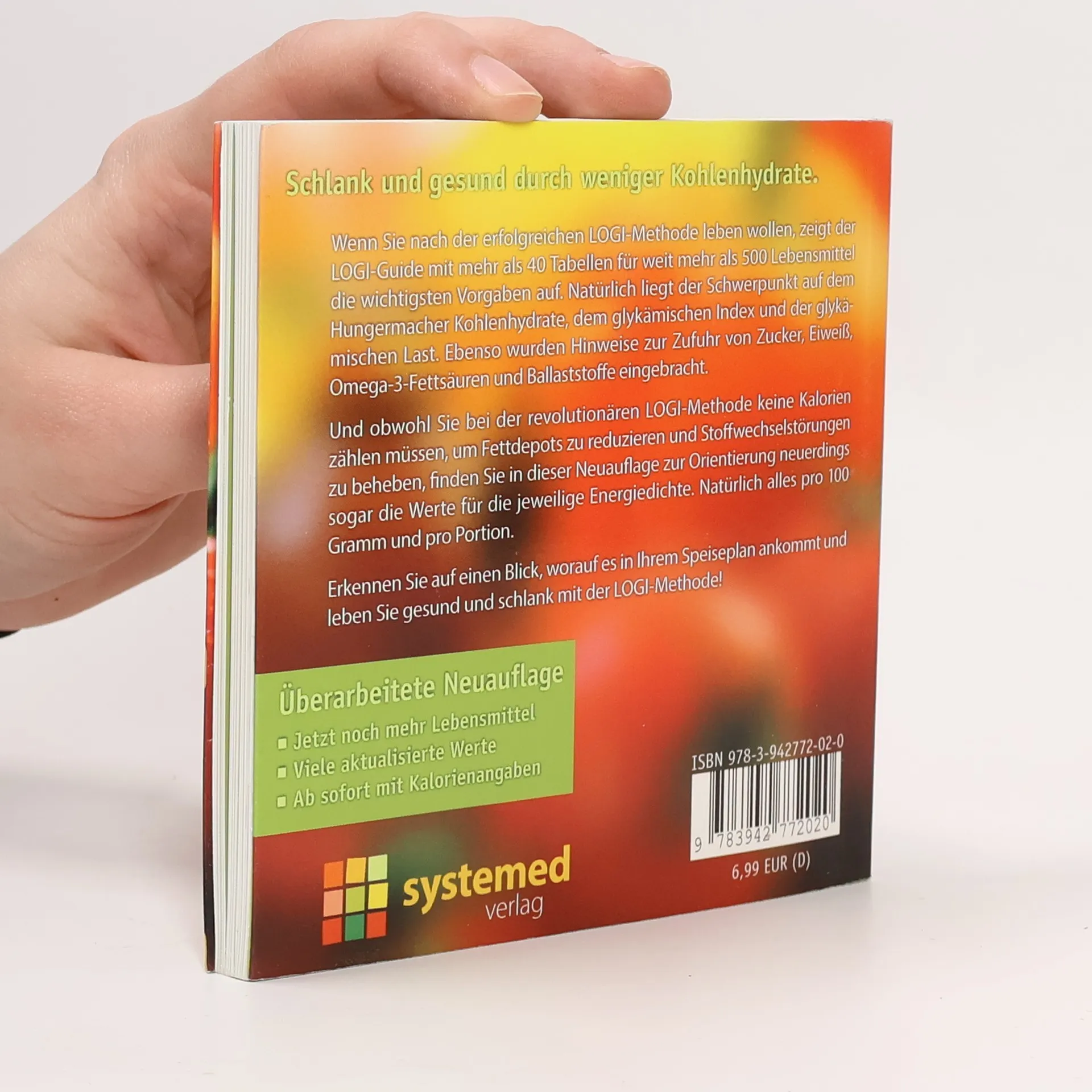 Schlank und gesund durch weniger Kohlenhydrate Wenn Sie nach der erfolgreichen LOGI-Methode leben wollen, zeigt der LOGI-Guide mit mehr als 40 Tabellen für weit mehr als 500 Lebensmittel die wichtigsten Vorgaben auf. Natürlich liegt der Schwerpunkt auf dem Hungermacher Kohlenhydrate, dem glykämischen Index und der glykämischen Last. Ebenso wurden Hinweise zur Zufuhr von Zucker, Eiweiß, Omega-3-Fettsäuren und Ballaststoffe eingebracht. Und obwohl Sie bei der revolutionären LOGI-Methode keine Kalorien zählen müssen, um Fettdepots zu reduzieren und Stoffwechselstörungen zu beheben, finden Sie in dieser Neuauflage zur Orientierung neuerdings sogar die Werte für die jeweilige Energiedichte. Natürlich alles pro 100 Gramm und pro Portion. Erkennen Sie auf einen Blick, worauf es in Ihrem Speiseplan ankommt und leben Sie gesund und schlank mit der LOGI-Methode! Überarbeitete Neuauflage - Jetzt noch mehr Lebensmittel - Viele aktualisierte Werte - Ab sofort mit Kalorienangaben