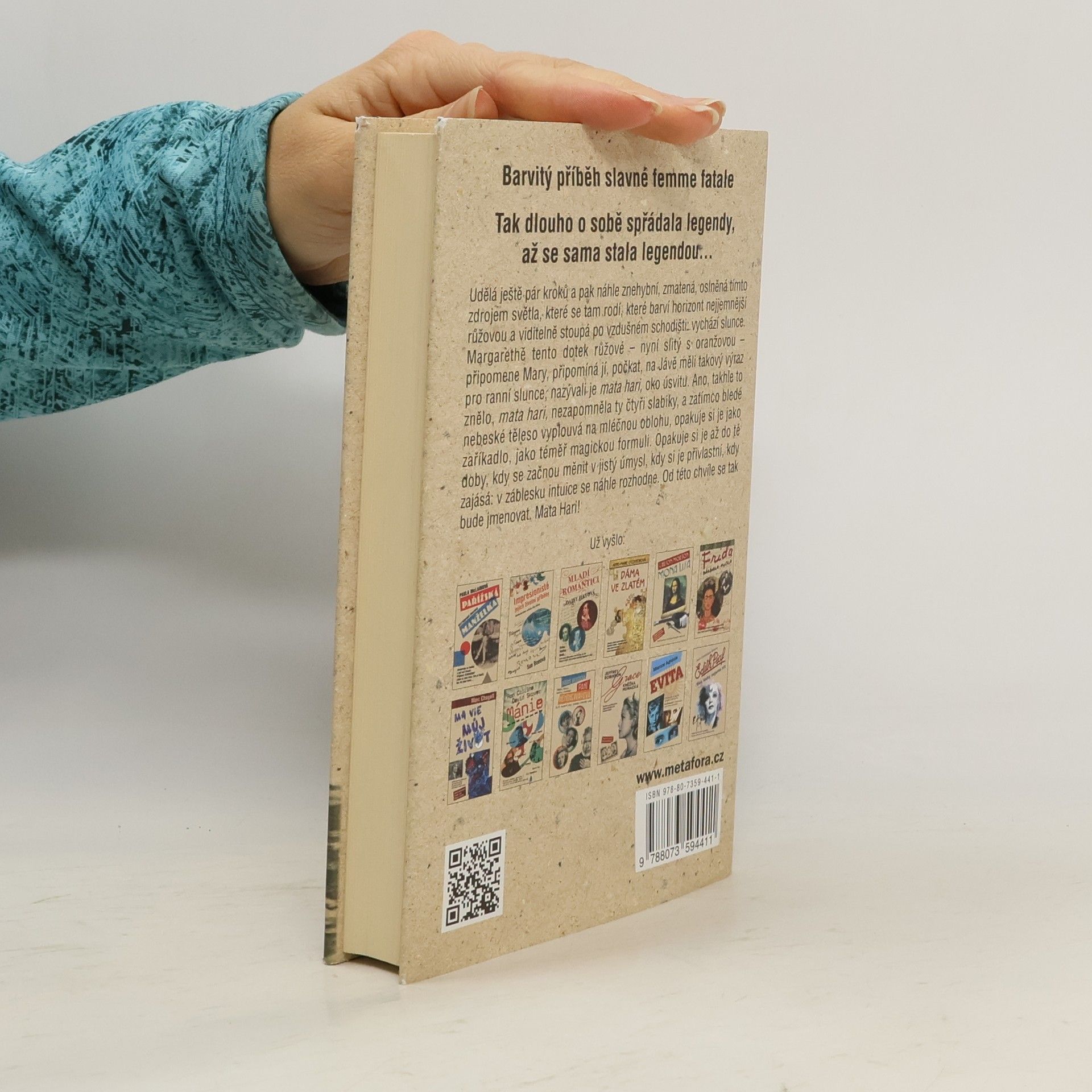 Tajemná dáma v srdci první světové války. Tak dlouho o sobě spřádala legendy, až se sama stala legendou… Mata Hari… jméno, které se stalo synonymem špionky. Osud tak neuvěřitelný, že prostý životopis působí fantastičtěji než vymyšlený příběh. „Rychle mě obejměte, polibte a nechte mě. Stoupněte si po mé pravici. Budu se na vás dívat. Sbohem.“ To jsou poslední slova, která Mata Hari pronesla, když 15. října 1917 stanula před popravčí četou. Co tomu ale předcházelo? Kde začala a kudy vedla její spletitá, neuvěřitelná cesta? Jak se z chudého nizozemského děvčátka s obyčejným jménem Margaretha Zelleová stala mysteriózní tanečnice Mata Hari, milenka mnoha významných mužů, špionka a nakonec odsouzenkyně na smrt? Ve zlaté éře, belle époque, pobláznila celou Paříž, zlomila mnohá srdce a její jméno letělo od úst k ústům. Všichni uvěřili, že je Orientálka a chrámová služebnice bohů, všichni podlehli jejím barvitým mystifikacím. Autorce se podařilo napsat životopisný román s nejvyšším respektem k historickým faktům, ale současně nesmírně niterný a strhující. Vyprávění v přítomném čase, překrásným, lehce archaickým jazykem, působí dojmem, jako bychom se vskutku ocitli na počátku minulého století a jako by se to všechno – události bizarní, komické i tragické – odehrávalo přímo teď, přímo před námi…