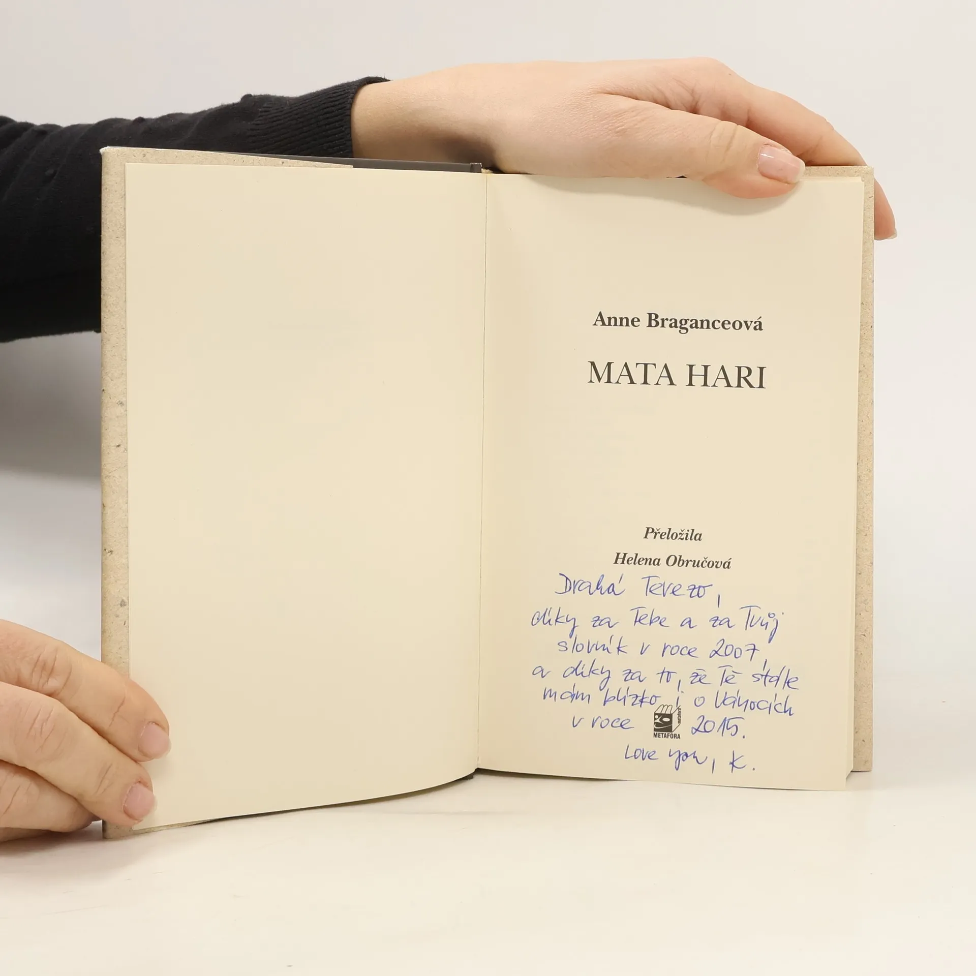 Tajemná dáma v srdci první světové války. Tak dlouho o sobě spřádala legendy, až se sama stala legendou… Mata Hari… jméno, které se stalo synonymem špionky. Osud tak neuvěřitelný, že prostý životopis působí fantastičtěji než vymyšlený příběh. „Rychle mě obejměte, polibte a nechte mě. Stoupněte si po mé pravici. Budu se na vás dívat. Sbohem.“ To jsou poslední slova, která Mata Hari pronesla, když 15. října 1917 stanula před popravčí četou. Co tomu ale předcházelo? Kde začala a kudy vedla její spletitá, neuvěřitelná cesta? Jak se z chudého nizozemského děvčátka s obyčejným jménem Margaretha Zelleová stala mysteriózní tanečnice Mata Hari, milenka mnoha významných mužů, špionka a nakonec odsouzenkyně na smrt? Ve zlaté éře, belle époque, pobláznila celou Paříž, zlomila mnohá srdce a její jméno letělo od úst k ústům. Všichni uvěřili, že je Orientálka a chrámová služebnice bohů, všichni podlehli jejím barvitým mystifikacím. Autorce se podařilo napsat životopisný román s nejvyšším respektem k historickým faktům, ale současně nesmírně niterný a strhující. Vyprávění v přítomném čase, překrásným, lehce archaickým jazykem, působí dojmem, jako bychom se vskutku ocitli na počátku minulého století a jako by se to všechno – události bizarní, komické i tragické – odehrávalo přímo teď, přímo před námi…