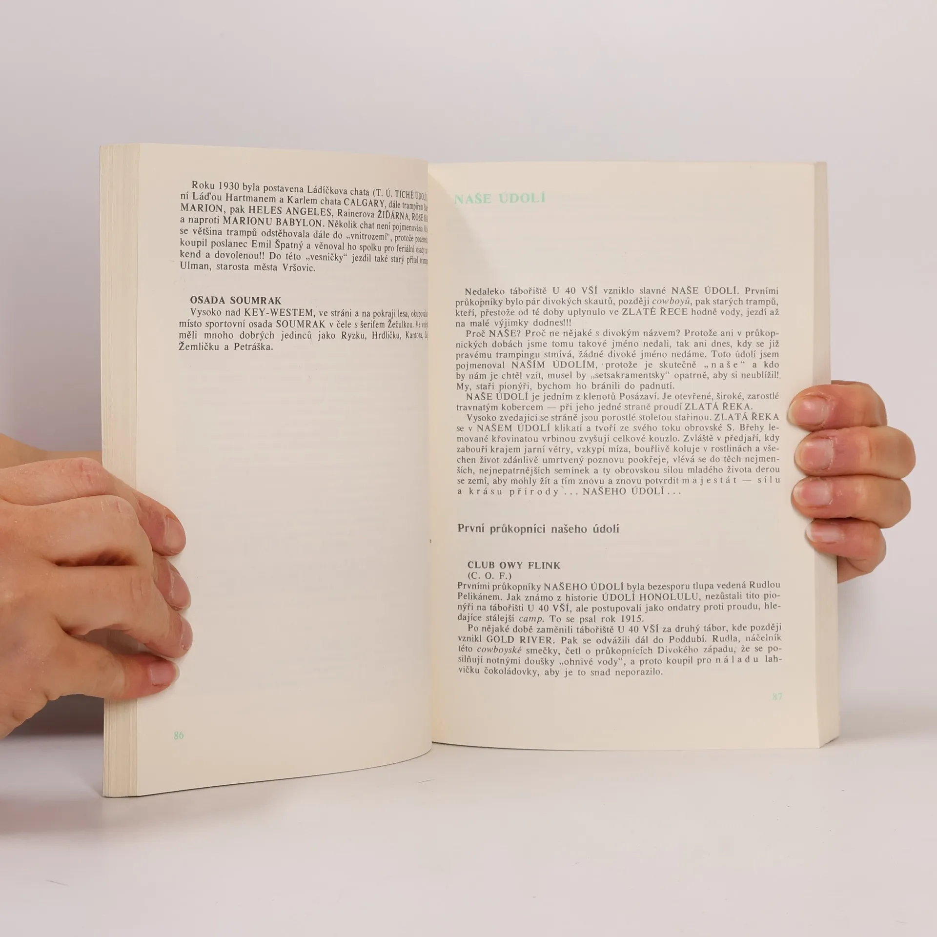 Přehled dějin československého trampingu od vzniku do roku 1940. Osady, členové, činnost sportovní i kulturní, trampské písně, tiskoviny, trampské zásady.