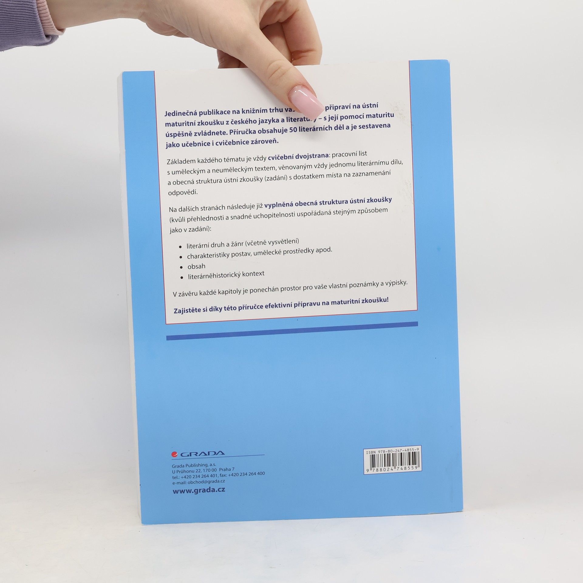 Jedinečná publikace na knižním trhu vás kvalitně připraví na ústní maturitní zkoušku z českého jazyka a literatury – s její pomocí maturitu úspěšně zvládnete. Příručka obsahuje 50 literárních děl a je sestavena jako učebnice i cvičebnice zároveň. Základem každého tématu je vždy cvičební dvojstrana: pracovní list s uměleckým a neuměleckým textem, věnovaným vždy jednomu literárnímu dílu, a obecná struktura ústní zkoušky (zadání) s dostatkem prázdného prostoru na zaznamenání odpovědí. Na dalších stranách následuje již vyplněná obecná struktura ústní zkoušky (kvůli přehlednosti a lehké uchopitelnosti uspořádaná stejným způsobem jako v zadání): • literární druh a žánr (včetně vysvětlení) • charakteristiky postav, umělecké prostředky apod. • obsah • literárněhistorický kontext V závěru každé kapitoly je ponechán prostor pro vaše vlastní poznámky a výpisky. Zajistěte si díky této příručce efektivní přípravu na maturitní zkoušku!
