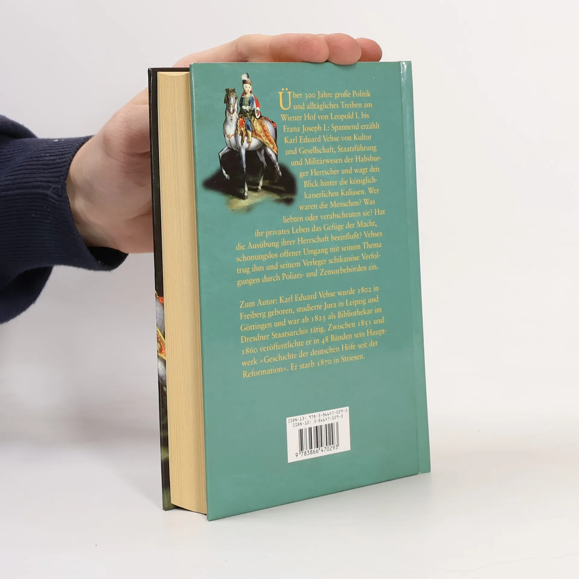 Über 300 Jahre große Politik und alltägliches Treiben am Wiener Hof von Leopold I. bis Franz Joseph I.: Spannend erzählt Karl Eduard Vehse von Kultur und Gesellschaft, Staatsführung und Militärwesen der Habsburger Herrscher und wagt den Blick hinter die königlich-kaiserlichen Kulissen. Wer waren die Menschen? Was liebten oder verabscheuten sie? Hat ihr privates Leben das Gefüge der Macht, die Ausübung ihrer Herrschaft beeinflußt? Vehses schonungslos offener Umgang mit seinem Thema trug ihm und seinem Verleger schikanöse Verfolgungen durch Polizei- und Zensurbehörden ein.