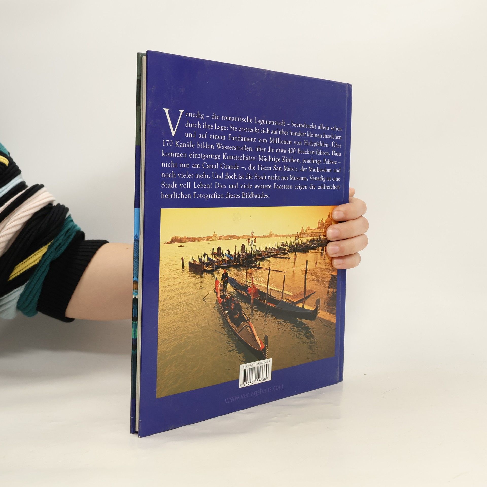 Ein preiswerter Bildband des bekannten Reisefotografen M. Galli über Venedig. Die Farbfotos geben die faszinierenden Sehenswürdigkeiten, die Kultur, die Architektur und das Leben der Lagunenstadt wieder. Neben den Bildlegenden und einem knappen Einführungstext in die Geschichte prägen die halbseitig bis doppelseitigen Farbfotos diesen Band. Dazu Register und eine Karte. Neben reisepraktischen Führern wie dem Baedeker (BA 5/05), nach Venedig-Bildbänden vom gleichen Verfasser wie "Venedig" (BA 10/04) oder "Reise durch Venedig" (BA 7/01, Neuauflage 2005) als Erstinformation empfohlen. (2)