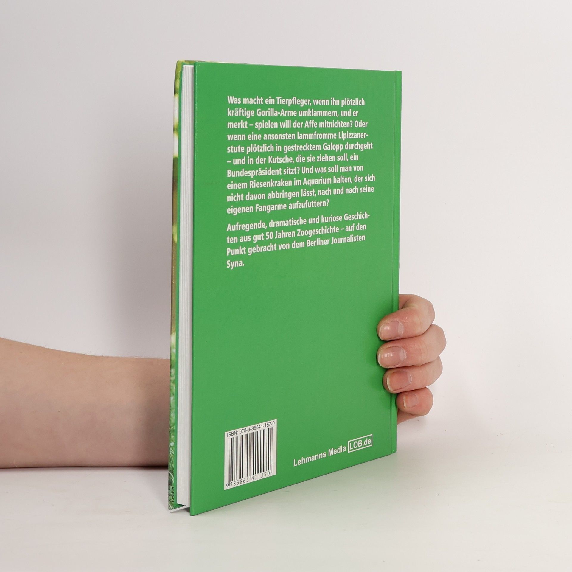 Was macht ein Tierpfleger, wenn ihn plötzlich kräftige Gorilla-Arme umklammern, und er merkt – spielen will der Affe mitnichten? Oder wenn eine ansonsten lammfromme Lipizzanerstute plötzlich in gestrecktem Galopp durchgeht – und in der Kutsche, die sie ziehen soll, ein Bundespräsident sitzt? Und was soll man von einem Riesenkraken im Aquarium halten, der sich nicht davon abbringen lässt, nach und nach seine eigenen Fangarme aufzufuttern? Aufregende, dramatische und kuriose Geschichten aus gut 50 Jahren Zoogeschichte – auf den Punkt gebracht von dem Berliner Journalisten Syna.