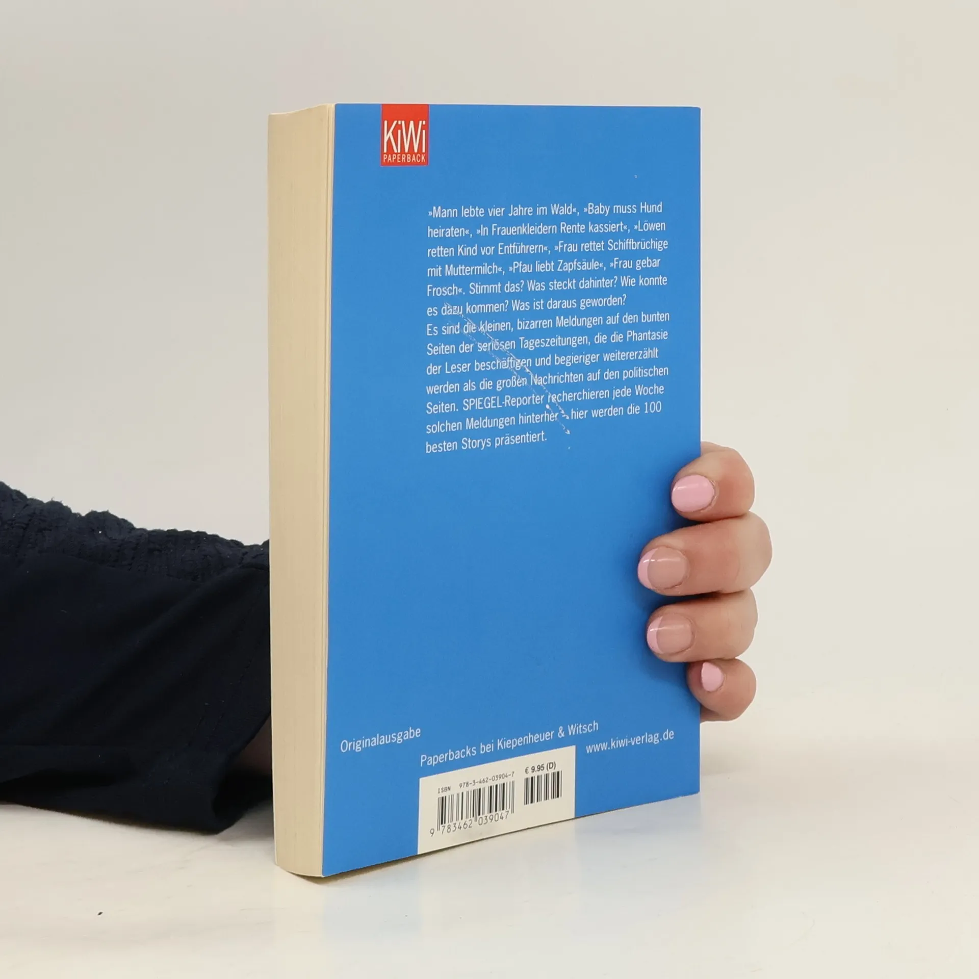 Die kleinen, bizarren Meldungen in den bunten Seiten seriöser Tageszeitungen fesseln oft mehr als große politische Nachrichten. SPIEGEL-Reporter haben über fünf Jahre hinweg solche Geschichten recherchiert und präsentieren hier die besten 100. Von einem Mann, der vier Jahre im Wald lebte, über ein Baby, das einen Hund heiraten muss, bis zu einem Pfau, der eine Zapfsäule liebt – die Vielfalt der Geschichten ist erstaunlich. Hinter jeder Meldung steckt eine eigene Geschichte: Wie kam es dazu? Was ist aus den Protagonisten geworden? Diese Recherchen bieten nicht nur amüsante, sondern auch traurige, rührende und bizarre Einblicke und bilden ein Mosaik unserer Welt, das fremde Sitten und deutsche Zustände beleuchtet. Die Rubrik ist bei SPIEGEL-Lesern äußerst beliebt, viele Leser senden eigene Meldungen zur Recherche ein. Auf SPIEGEL-Online erreichen die Geschichten täglich bis zu 250.000 Klicks. Die gesammelten Storys sind in dreizehn Kapitel unterteilt, die sich mit den elementarsten Aspekten des Lebens befassen: irren, glauben, kämpfen, siegen, rächen, fliehen, suchen, warten, retten, vergessen, täuschen, strafen und lieben.