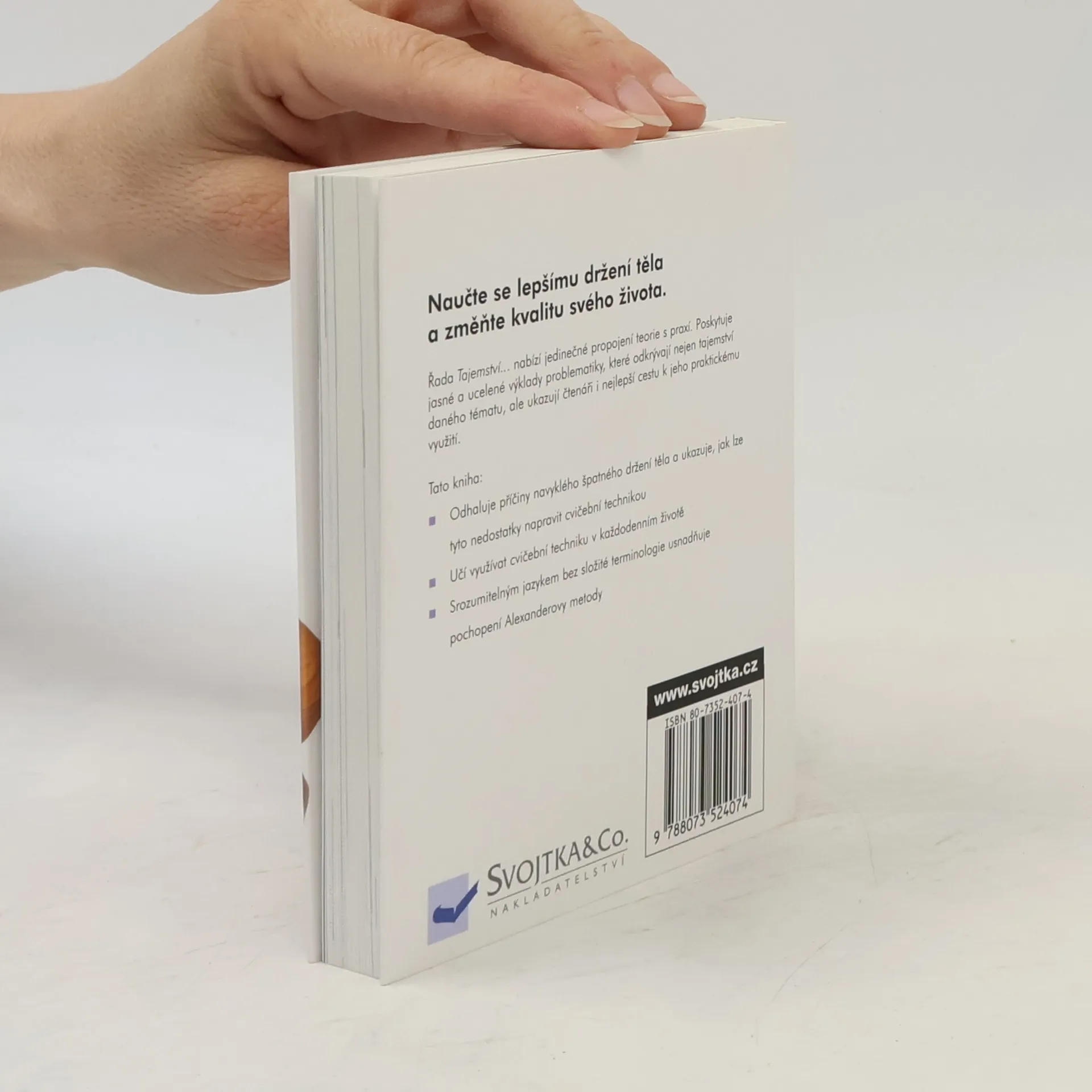 Kniha odhaluje příčiny navyklého špatného držení těla a ukazuje, jak lze tyto nedostatky napravit cvičební technikou. Učí využívat učební techniky v každodenním životě. Srozumitelným jazykem bez složité terminologie usnadňuje pochopení Alexanderovy metody.