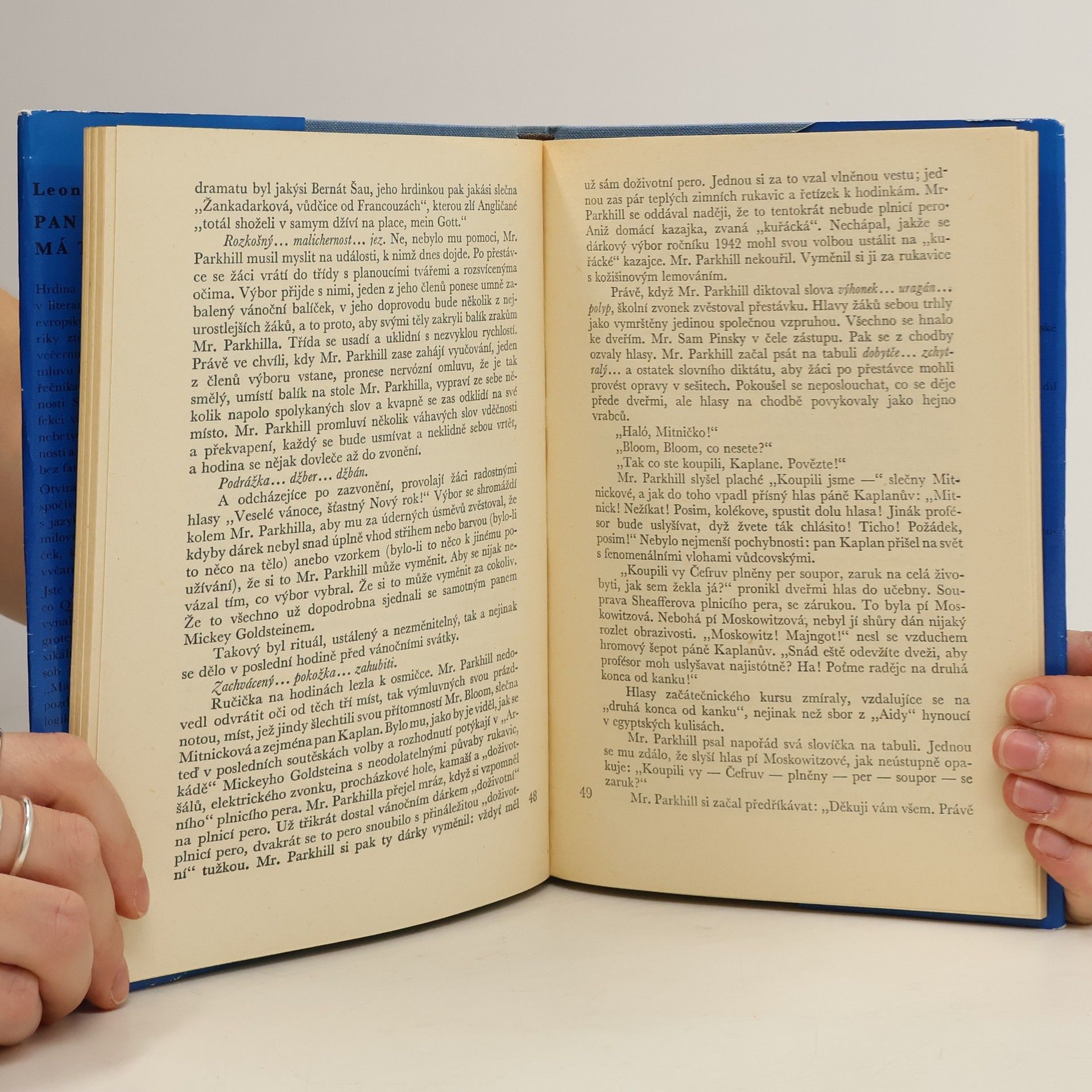 Humoristický román odehrávající se v předválečném New Yorku, dílo, jehož humor spočívá v jazyku. Hrdinou knihy je evropský přistěhovalec, lidový mudrc pan Kaplan, který se, pokud jde o anglický originál, učí v New Yorku angličtině či spíše američtině, pokud jde o český překlad, učí se v témž prostředí češtině. Jde o knihu pro milovníky slov, slovních hříček a jazykových kouzel, o jejímž českém překladu překladatel říká: „Šlo mi o přemetné hry na visuté hrazdě jazyka... můj pan Kaplan je úlitbou na oltáři češtiny.“