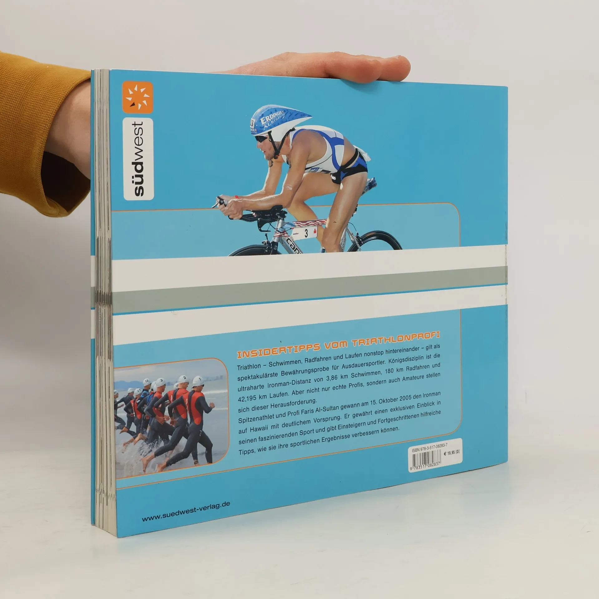 Insidertipps vom deutschen Ironman und Weltmeister 310.000 Zuschauer, knapp 7.000 Teilnehmer - das ist die Bilanz des Triathlons 2006 in Hamburg, der damit zur größten Triathlonveranstaltung der Welt wurde. Der Popularitätszuwachs ist enorm. Triathlon - wobei Schwimmen Radfahren und Laufen unmittelbar nacheinander erfolgen - gilt als spektakulärste Bewährungsprobe für einen Sportler überhaupt. Die ultraharte Ironman-Distanz von 3,86 km Schwimmen, 180 km Radfahren und 42,195 km Laufen ist allerdings nur etwas für Kämpfer wie Faris Al-Sultan. Aber der Münchener Spitzenathlet, der am 15. Oktober 2005 den Ironman auf Hawaii mit deutlichem Vorsprung gewann, gewährt einen exklusiven Einblick in seinen anspruchsvollen Sport und gibt Einsteigern und Fortgeschrittenen hilfreiche Tipps, wie sie ihre Zeiten verbessern können - auch wenn sich die meisten Triathlon-Fans erst einmal an die olympische Distanz (1,5 km Schwimmen, 40 km Radfahren, 10 km Laufen) heranwagen oder die Volksdistanz (500 m Schwimmen, 20 km Radfahren, 5 km Laufen) bevorzugen werden.
