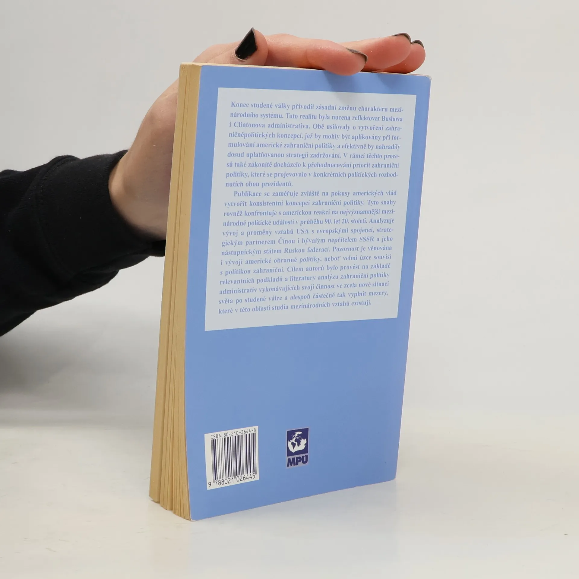 Publikace se zaměřuje na pokusy amerických vlád konce minulého století vytvořit konsistentní koncepci zahraniční politiky. Tyto snahy rovněž konfrontuje s americkou reakcí na nejvýznamnější mezinárodně politické události v průběhu 90. let 20. století. Analyzuje vývoj a proměny vztahů USa s evropskými spojenci, strategickým partnerem Čínou i bývalým nepřítelem státu Ruskou federací. Pozornost je věnovaná i vývoji americké obranné politiky, neboť velmi úzce souvisí s politikou zahraniční. Cílem autorů bylo provést na základě relevantních podkladů a literatury analýzu zahraniční politiky administrativ vykonávajících svoji činnost ve zcela nové situaci světa po světové válce a alespoň částečně tak vyplnit mezery, které v této oblasti studia mezinárodních vztahů existují.