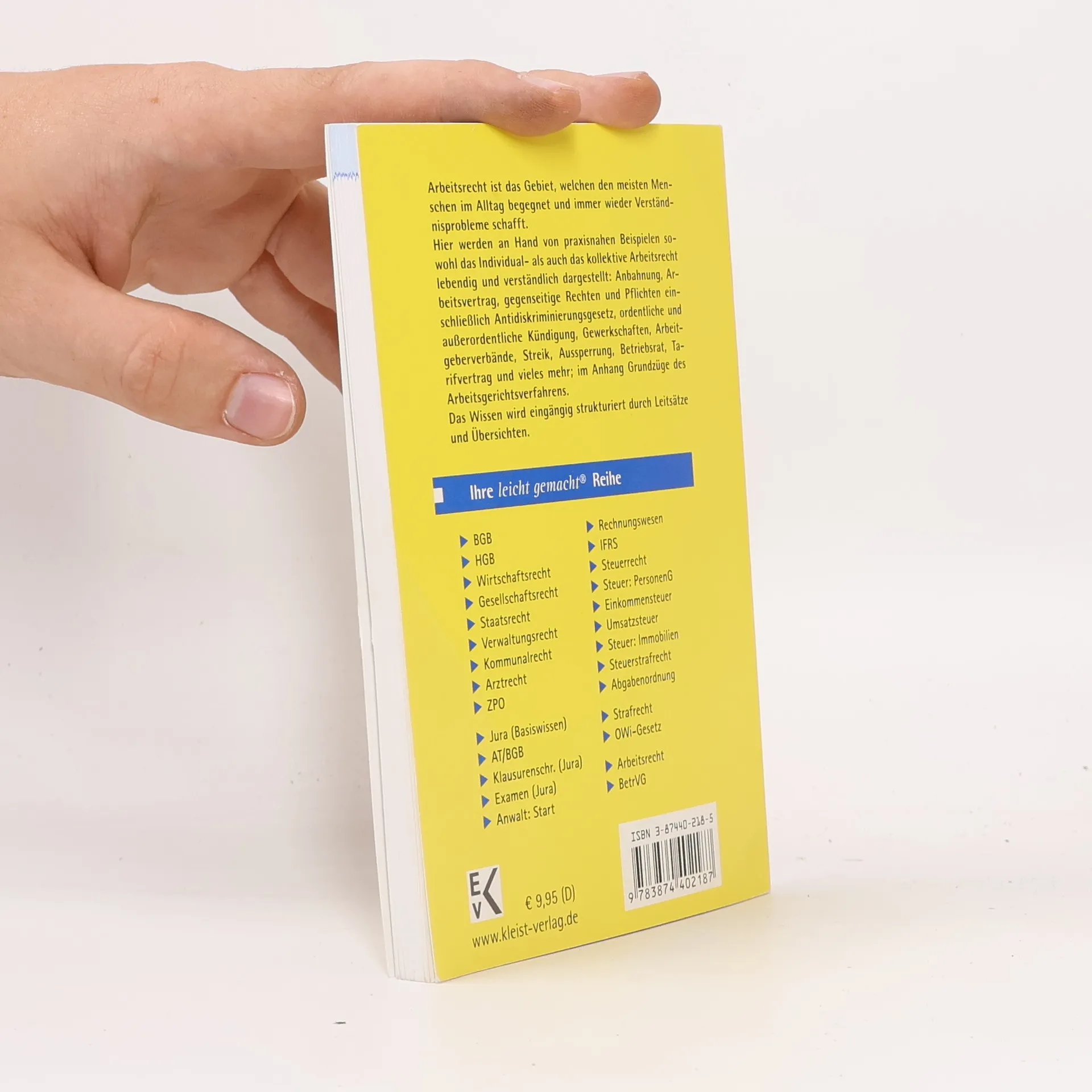 Die lang erwartete Neuauflage dieses erfolgreichen Bandes der Reihe ist völlig neu bearbeitet worden, Arbeitsrecht ist das Gebiet, welches den meisten Menschen im Alltag begegnet und immer wieder Verständnisprobleme schafft. Hier werden an hand von praxisnahen Beispielen sowohl das Individual- als auch das kollektive Arbeitsrecht lebendig und verständlich darge-stellt: Anbahnung, Arbeitsvertrag, gegenseitige Rechte und Pflichten einschließlich des neuen Antidiskrimisierungsgesetzes, ordentliche und außerordentliche Kündigung, Arbeitgeberverbände Gewerkschaften, Streik, Aussperrung, Betriebsrat, Tarifvertrag und vieles mehr: im An-hang Grundzüge des Arbeitsgerichtsverfahrens. Das Wissen wird eingängig strukturiert durch Leitsätze und Übersichten.
