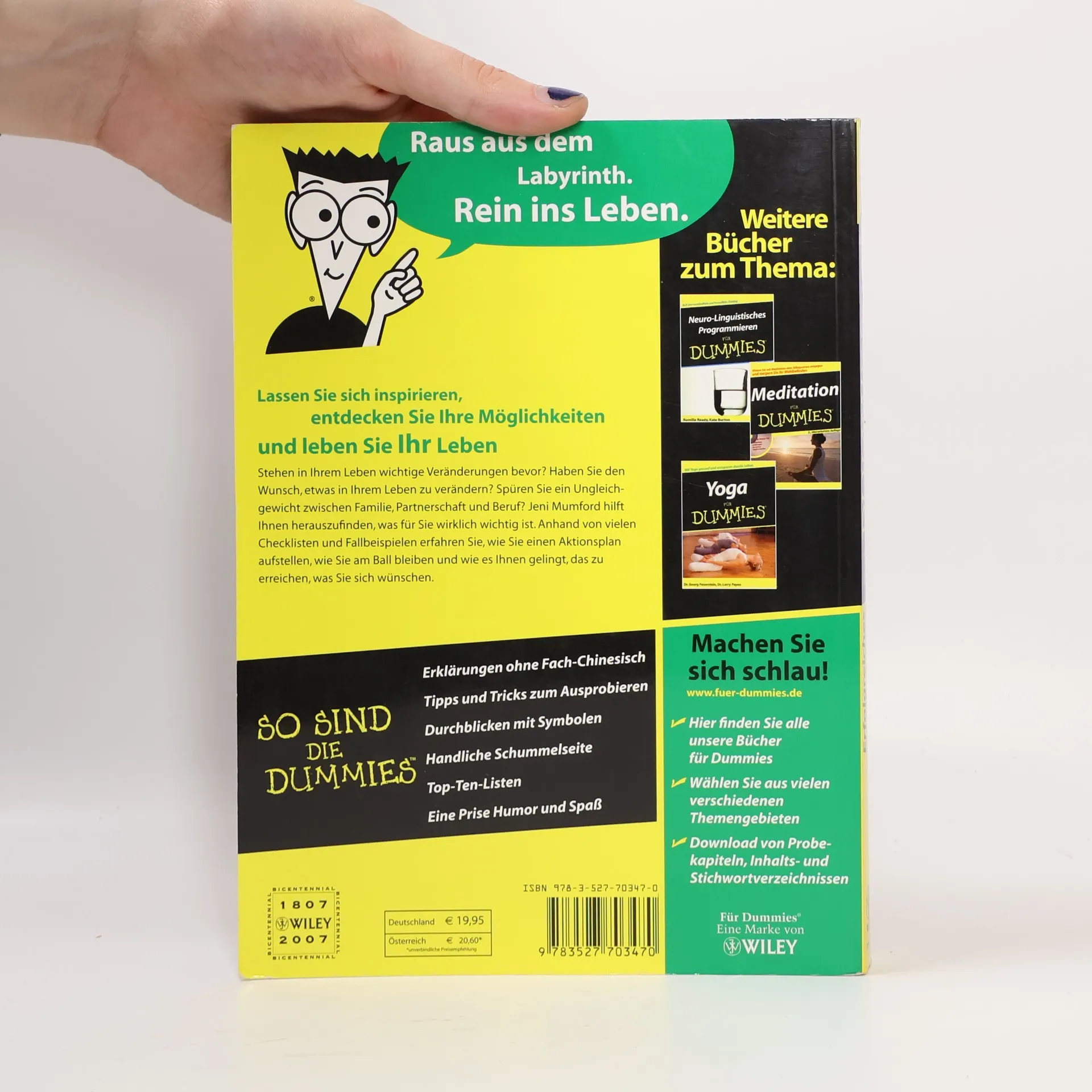 Das Leben wird immer hektischer und so mancher verliert dabei seine Ziele aus dem Blick. Life Coaching hilft, die eigenen Wünsche zu erkennen, Überzeugungen und Erwartungen zu überprüfen und Ziele zu definieren. Ob beruflich oder privat - Life Coaching gibt Unterstützung in schwierigen Lebensphasen und bei Neu-Orientierungen. Der Life Coach ist Berater, Unterstützer und Helfer, er öffnet den Blick auf Stärken und Schwächen und ermöglicht somit die optimale Entfaltung des eigenen Potenzials. „Erfolgreiches Life Coaching für Dummies“ begleitet auf dem Weg, der das Ziel ist.