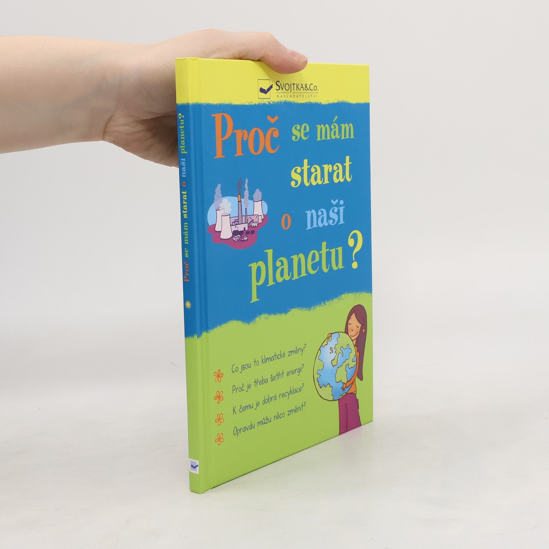 Planeta Země existuje už několik miliard let. Měla by tedy leccos vydržet, tak jaké může mít potíže? Potíže spočívají v tom, že dochází k určitým změnám, které ale nepřicházejí přirozeně a pozvolna, jako tomu bylo dřív. Dějí se rychle a zpravidla za to může lidská činnost. Člověk by měl být ze všech živých tvorů nejchytřejší. My lidé umíme obdělávat půdu, stavět města, továrny i vyrábět letadla. Všechny tyto činnosti však škodí planetě i jejím obyvatelům. Jaké konkrétní klimatické změny probíhají? Proč je třeba šetřit energií? K čemu je dobrá recyklace? Opravdu může jeden člověk něco změnit? To všechno se dozvíte v této knížce plné báječných tipů, jak chránit přirozené prostředí planety Země.