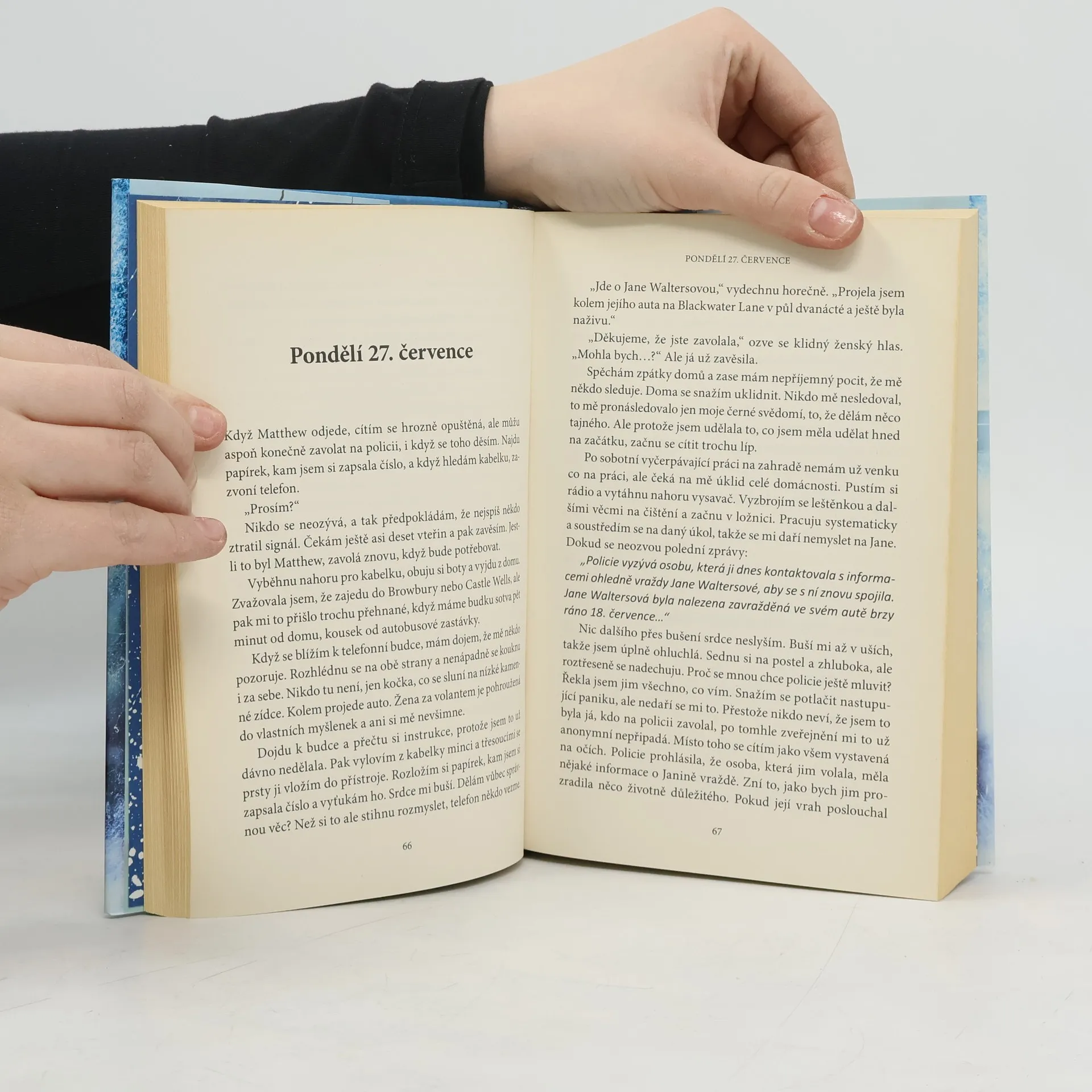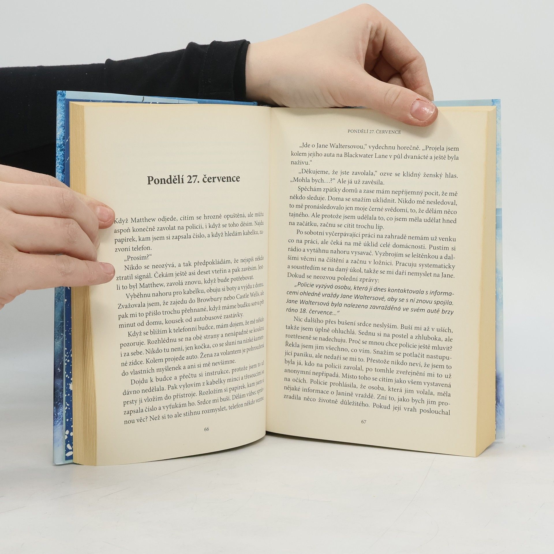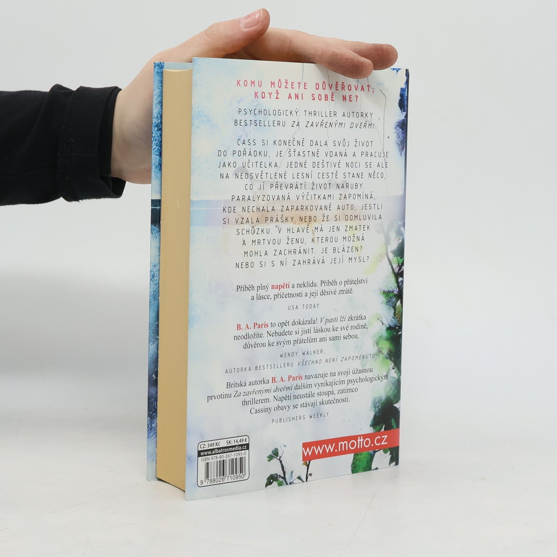 Komu můžete důvěřovat, když ani sobě ne? Psychologický thriller autorky bestselleru Za zavřenými dveřmi. Cass si konečně dala svůj život do pořádku, je šťastně vdaná a pracuje jako učitelka. Jedné deštivé noci se ale na neosvětlené lesní cestě stane něco, co jí převrátí život naruby. Paralyzovaná výčitkami zapomíná, kde nechala zaparkované auto, jestli si vzala prášky nebo že si domluvila schůzku. V hlavě má jen zmatek a mrtvou ženu, kterou možná mohla zachránit. Je blázen? Nebo si s ní zahrává její mysl? Získaná ocenění: Goodreads Choice Awards, 2016, nominace v kategorii debut roku Goodreads Choice Awards, 2016, nominace v kategorii Best Thriller.