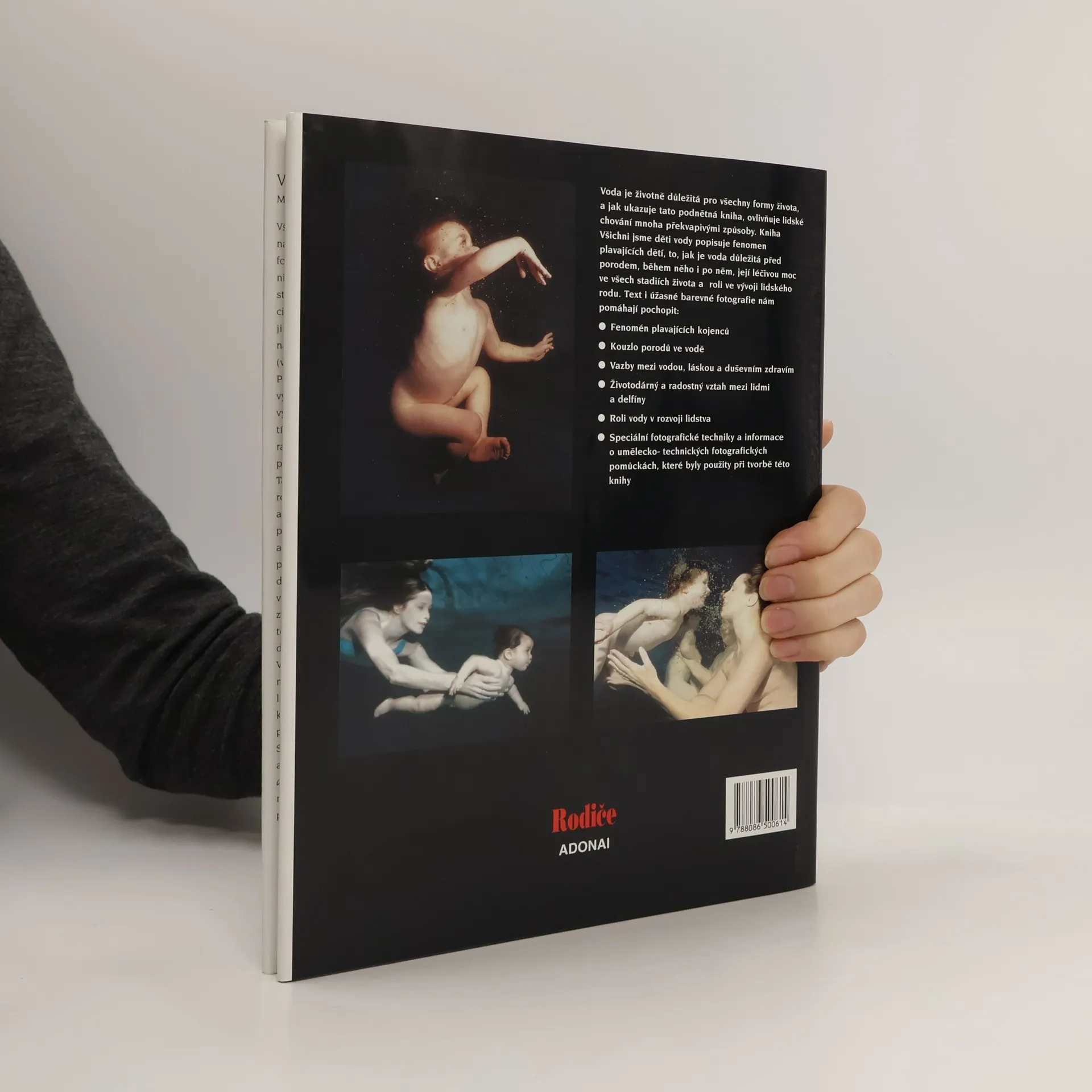 Voda je životně důležitá pro všechny formy života, a jak ukazuje tato podnětná kniha, ovlivňuje lidské chování mnoha překvapivými způsoby. Kniha popisuje fenomén plavajících dětí, to, jak je voda důležitá před porodem, během něho i po něm, její léčivou moc ve všech stádiích života a roli ve vývoji lidského rodu. Text i úžasné barevné fotografie nám pomáhají pochopit: - fenomén plavajících kojenců; - kouzlo porodů ve vodě; - vazby mezi vodou, láskou a duševním zdravím; - životodárný a radostný vztah mezi lidmi a delfíny; - roli vody v rozvoji lidstva; - speciální fotografické techniky a informace o umělecko-technických fotografických pomůckách, které byly použity při tvorbě této knihy.