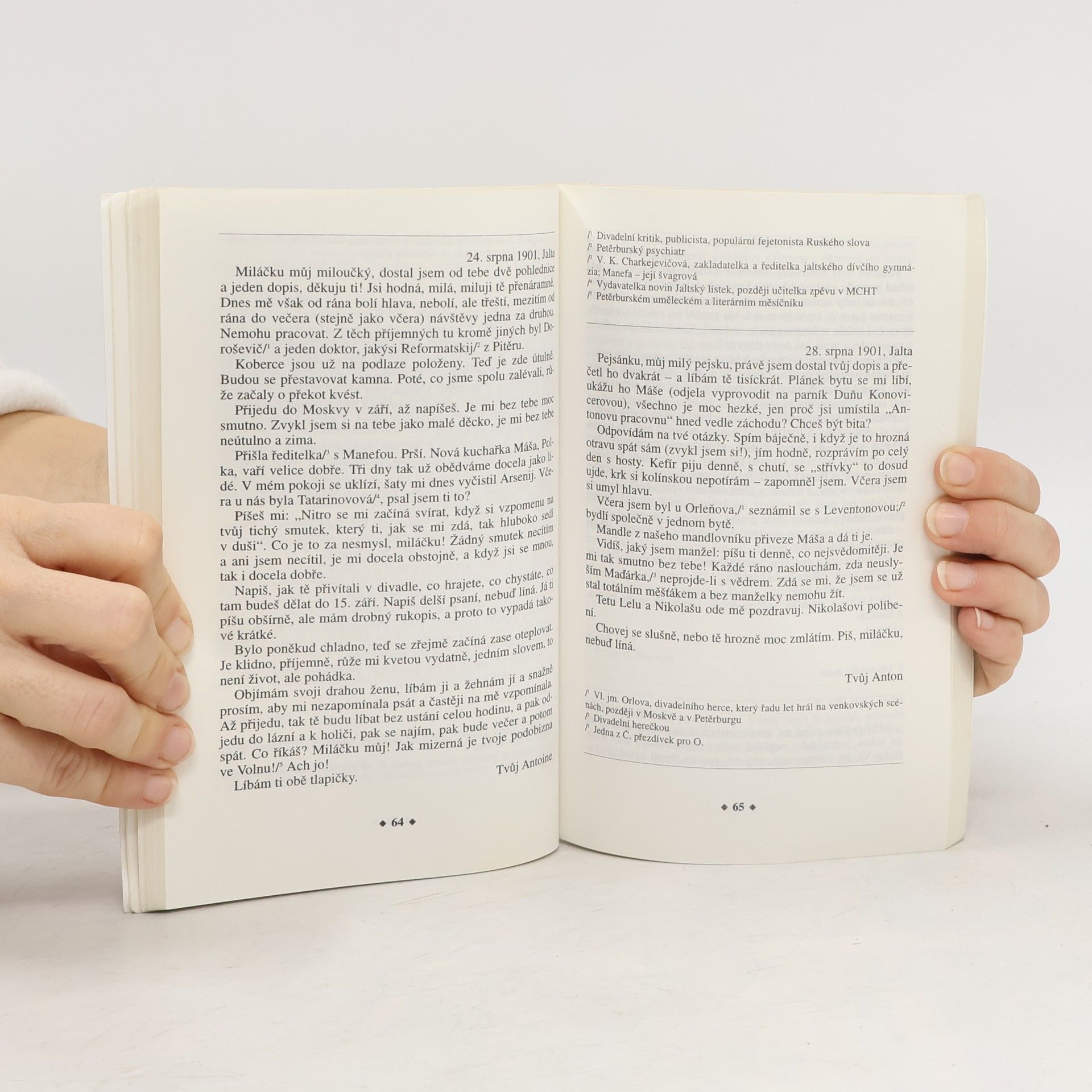 Šest let (z toho tři roky v manželském svazku, přervaném až smrtí) trval vztah světově proslulého autora A. P. Čechova a přední herečky Moskevského uměleckého divadla Olgy Knipperové. Dochovaná korespondence tvoří svébytný román v dopisech, odhalující skutečnou historii velké, složité, v lecčems radostné a šťastné, ale v lecčems i tragicky utvářené lásky. Vynucená odluka přináší muka oběma protagonistům. Má Olga právo nechat manžela strádat v Jaltě, kde musí díky své nemoci žít? Má Anton Pavlovič právo žádat po své ženě, aby se na vrcholu svých hereckých úspěchů rozloučila s uměleckou kariérou? Mezi řádky jednotlivých listů probleskuje Čechovova osobitá poetika, jež z nich vytváří dílo, pro které bychom jen stěží hledali vzor v obsáhlé světové literatuře milostných dopisů.