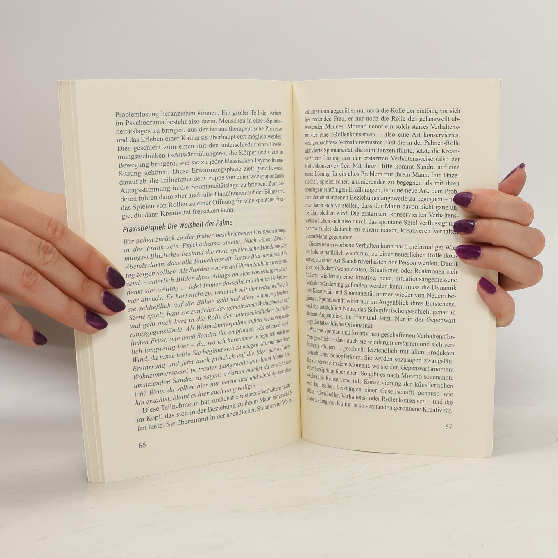 Das Psychodrama ist eine psychotherapeutische Aktionsmethode, bei der Vorstellungen und Situationen in Handlung und szenische Darstellung umgesetzt werden. Dadurch werden Gefühle und Konflikte sichtbar und vor allem veränderbar gemacht. Es geht um die Begegnung, um Spontaneität, Kreativität, Spiel und Handlung. Der Leser lernt auf kurzweilige Art das Psychodrama und seine Ursprünge kennen und erfährt, wem diese Therapieform nützen kann.