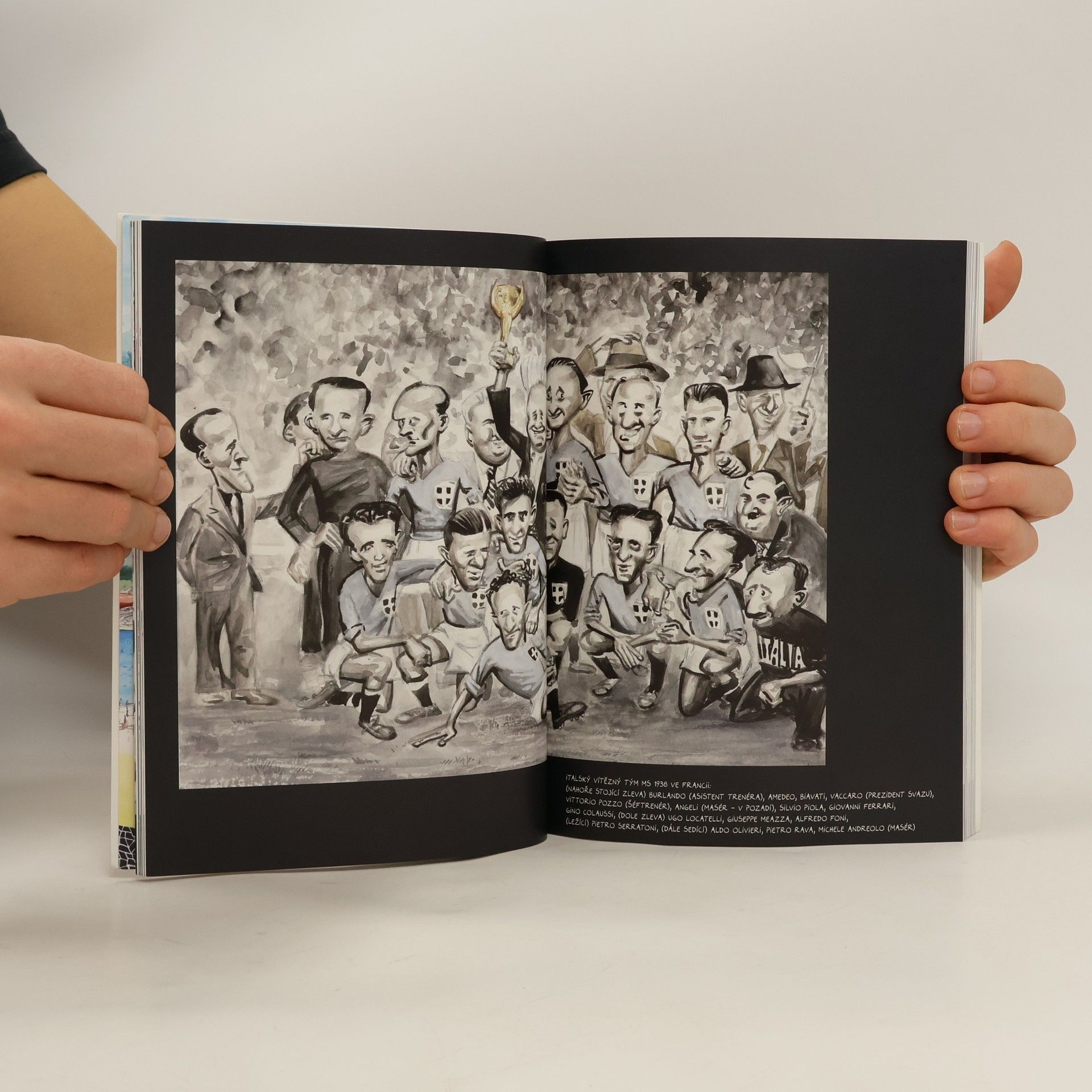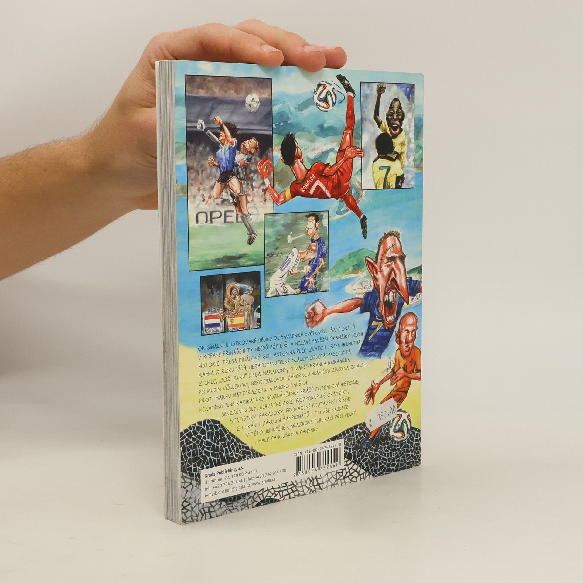 Originální ilustrované dějiny všech dosavadních světových šampionátů v kopané přinášejí ty nejdůležitější a nejzajímavější okamžiky jejich historie. Třeba finálový gól Antonína Puče z roku 1934, zlatou trefu Helmutha Rahna z roku 1954, nezapomenutelný slalom Josefa Masopusta z Chile, "boží ruku" Diega Maradony, plivanec Franka Rijkaarda po Rudim Völlerovi, nefotbalovou zákeřnou hlavičku Zinedina Zidaneho proti Marku Matterazzimu a mnoho dalších. Nezaměnitelné karikatury nejznámějších hráčů fotbalové historie, senzační góly, úchvatné akce, rozporuplně okamžiky, statistiky, paradoxy, provázené poutavými příběhy z utkání i zákulisí šampionátů - to vše najdete v této jedinečné obrázkové publikaci pro velké i malé fanoušky a fanynky.
