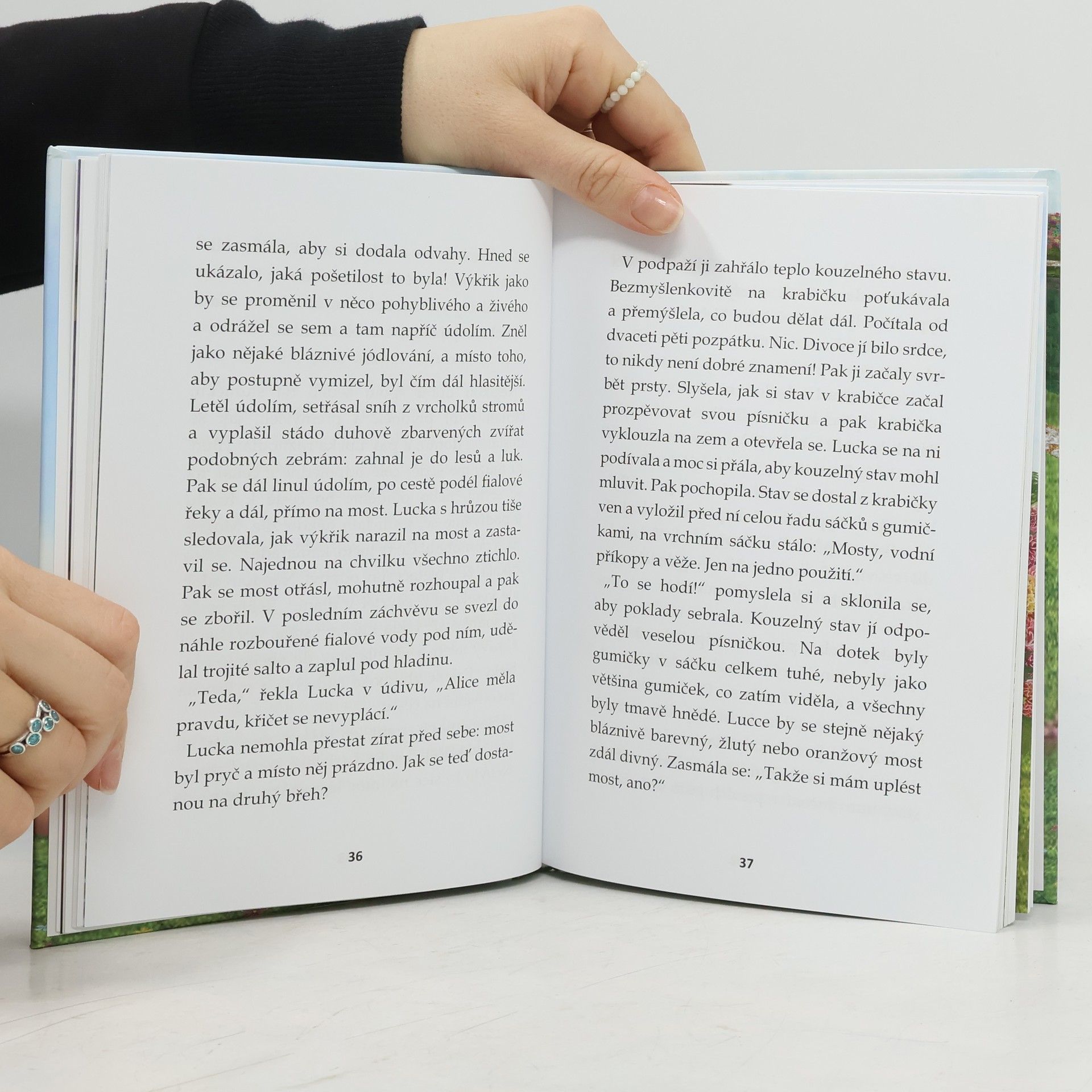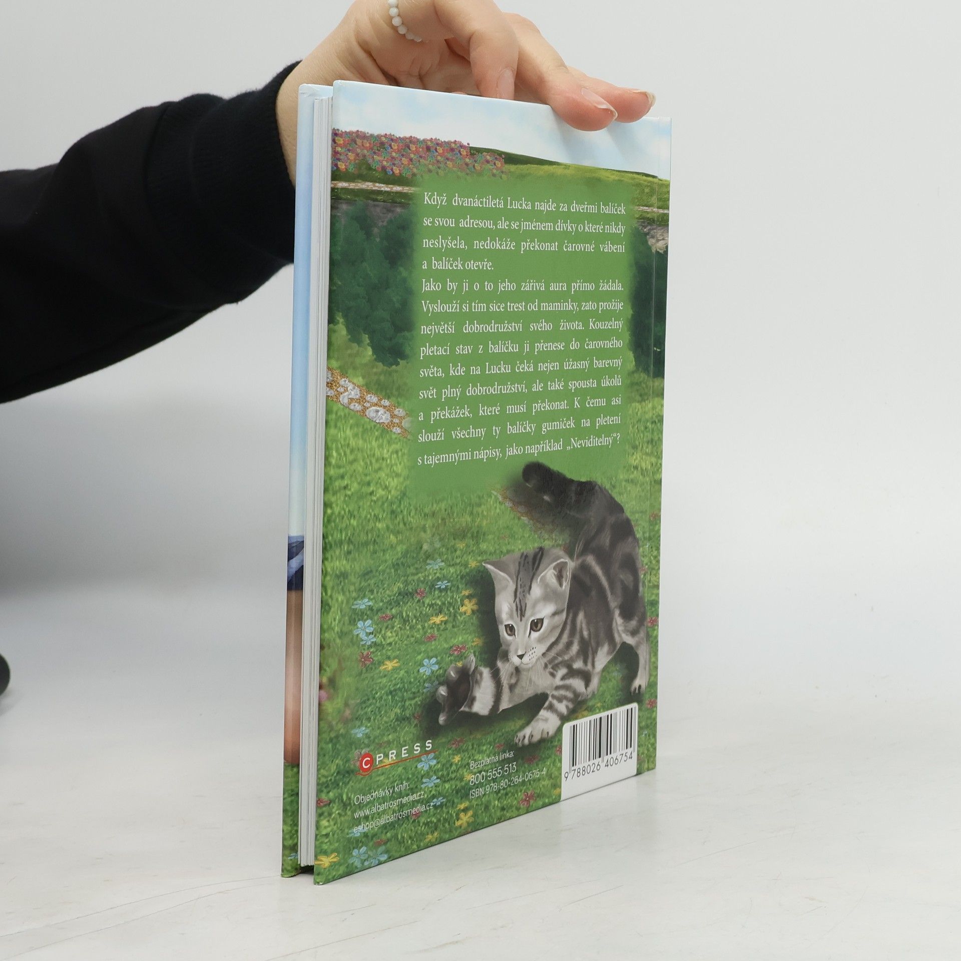 Když dvanáctiletá Lucka najde za dveřmi balíček se svou adresou, ale se jménem dívky o které nikdy neslyšela, nedokáže překonat čarovné vábení a balíček otevře. Jako by ji o to jeho zářivá aura přímo žádala. Vyslouží si tím sice trest od maminky, zato prožije největší dobrodružství svého života. Kouzelný pletací stav z balíčku ji přenese do čarovného světa, kde na Lucku čeká nejen úžasný barevný svět plný dobrodružství, ale také spousta úkolů a překážek, které musí překonat. K čemu asi slouží všechny ty balíčky gumiček na pletení s tajemnými nápisy, jako například „Neviditelný“?