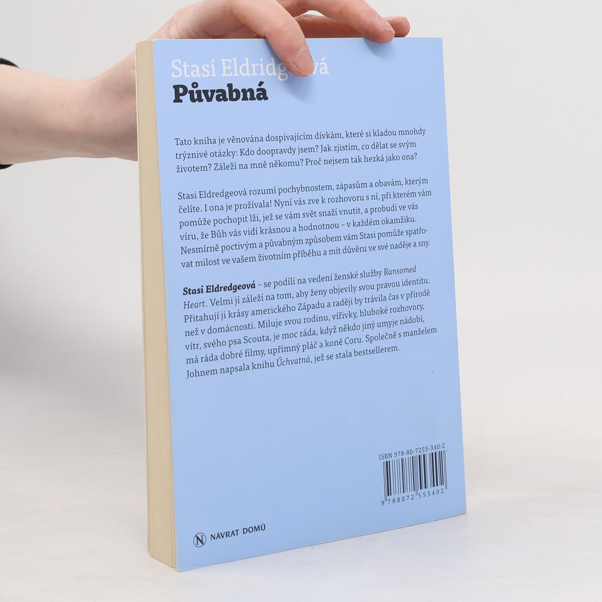 Tato kniha je věnována dospívajícím dívkám, které si kladou mnohdy trýznivé otázky: Kdo doopravdy jsem? Jak zjistím, co dělat se svým životem? Záleží na mně někomu? Proč nejsem tak hezká jako ona? Stasi Eldredgeová rozumí pochybnostem, zápasům a obavám, kterým čelíte. I ona je prožívala! Nyní vás zve k rozhovoru s ní, při kterém vám pomůže pochopit lži, jež se vám svět snaží vnutit, a probudí ve vás víru, že Bůh vás vidí krásnou a hodnotnou - v každém okamžiku. Nesmírně poctivým a půvabným způsobem vám Stasi pomůže spatřovat milost ve vašem životním příběhu a mít důvěru ve své naděje a sny.