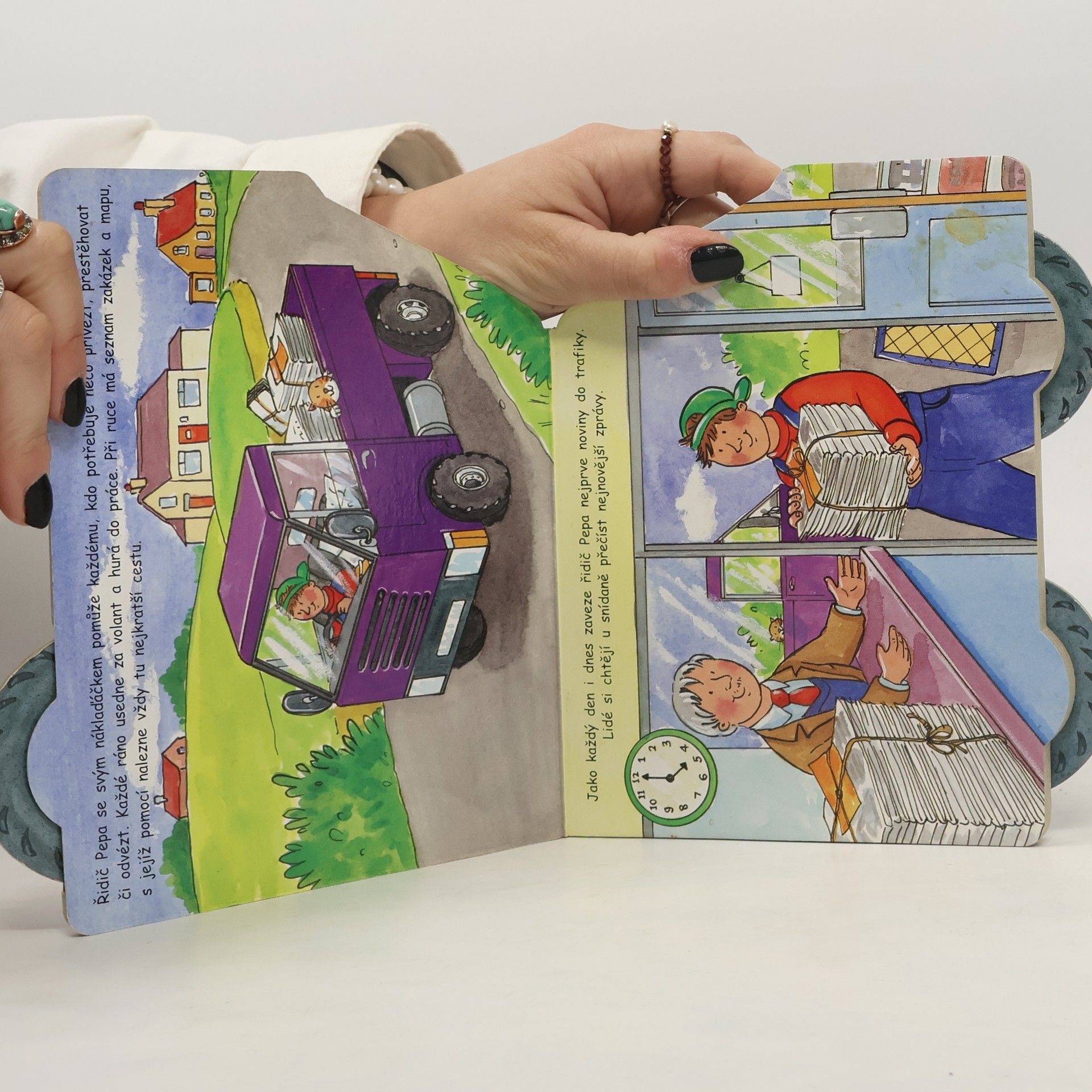 S tímto leporelem prožijí nejmenší čtenáři rušný den řidiče Pepíka s jeho pomocníkem - náklaďákem Pepíkem. Seznámí se nejen s prací řidiče, ale zároveň si mohou pohrát s originálním leporelem na kolečkách. Pevná kartonová kniha ve tvaru nákladního auta s pohyblivými kolečky.