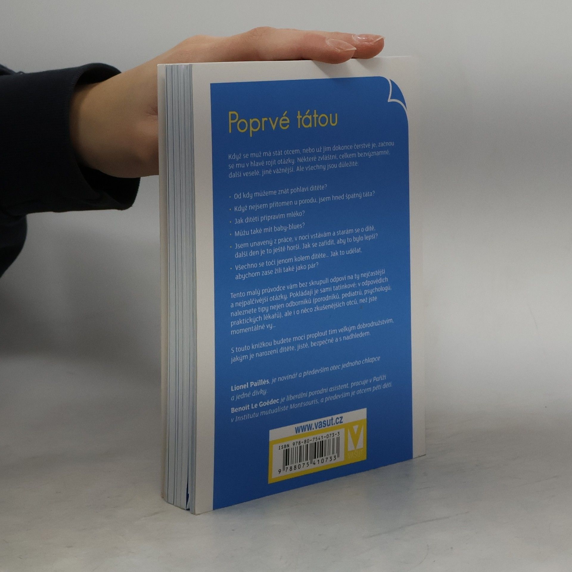 Když se muž má stát otcem, nebo už jím dokonce čerstvě je, začnou se mu v hlavě rojit otázky. Některé zvláštní, celkem bezvýznamné, další veselé, jiné vážnější. Ale všechny jsou důležité: • Od kdy můžeme znát pohlaví dítěte? • Když nejsem přítomen u porodu, jsem hned špatný táta? • Jak dítěti připravím mléko? • Můžu také mít baby-blues? • Jsem unavený z práce, v noci vstávám a starám se o dítě, další den je to ještě horší. Jak se zařídit, aby to bylo lepší? • Všechno se točí jenom kolem dítěte… Jak to udělat, abychom zase žili také jako pár? Tento malý průvodce vám bez skrupulí odpoví na ty nejčastější a nejpalčivější otázky. Pokládají je sami tatínkové; v odpovědích naleznete tipy nejen odborníků (porodníků, pediatrů, psychologů, praktických lékařů), ale i o něco zkušenějších otců, než jste momentálně vy… S touto knížkou budete moci proplout tím velkým dobrodružstvím, jakým je narození dítěte, jistě, bezpečně a s nadhledem.