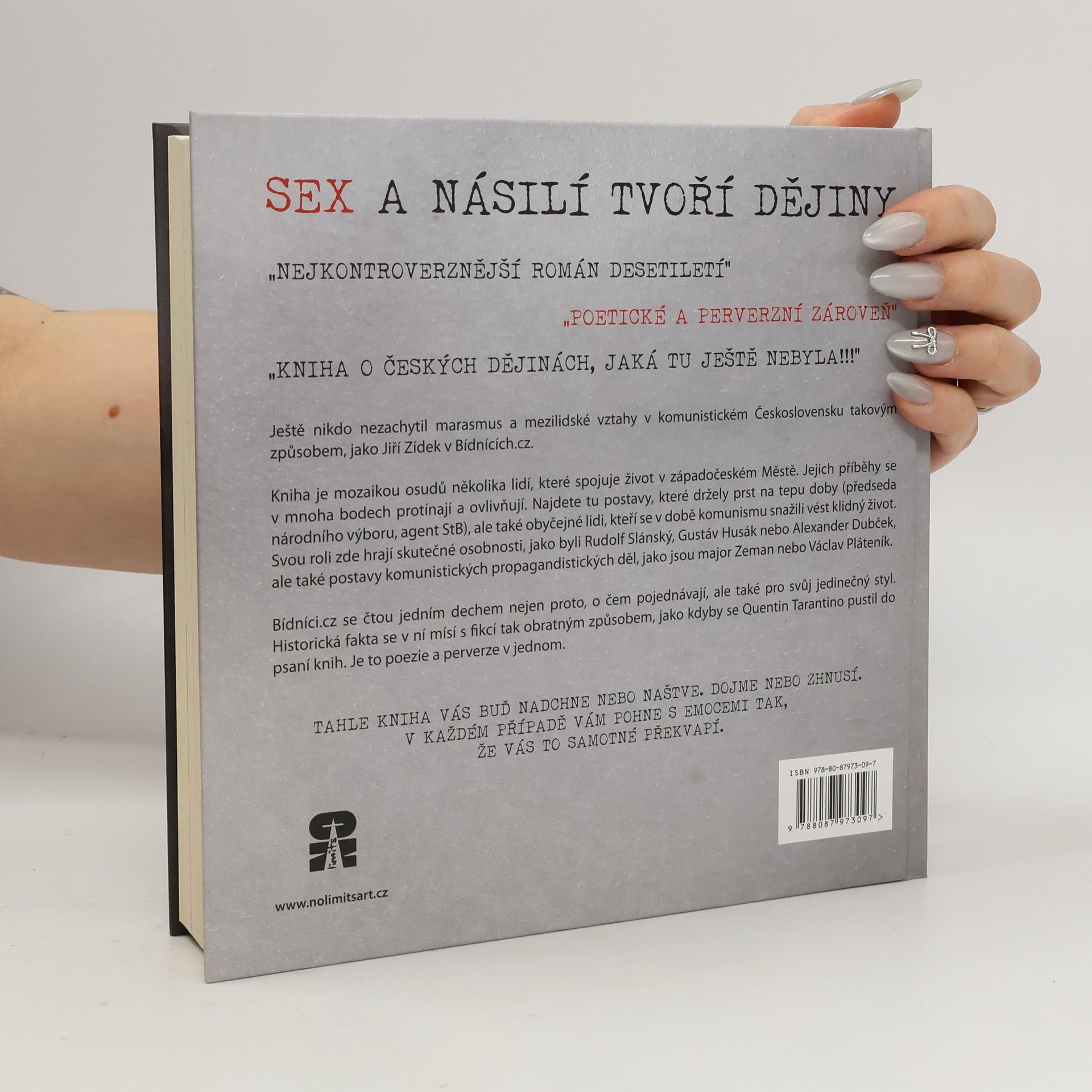 Ještě nikdo nezachytil marasmus a mezilidské vztahy v komunistickém Československu takovým způsobem, jako Jiří Zídek v Bídnících.cz. Kniha je mozaikou osudů několika lidí, které spojuje život v západočeském Městě. Jejich příběhy se v mnoha bodech protínají a ovlivňují. Najdete tu postavy, které držely prst na tepu doby (předseda národního výboru, agent StB), ale také obyčejné lidi, kteří se v době komunismu snažili vést klidný život. Svou roli zde hrají skutečné osobnosti, jako byli Rudolf Slánský, Gustáv Husák nebo Alexander Dubček, ale také postavy komunistických propagandistických děl, jako jsou major Zeman nebo Václav Pláteník. Bídníci.cz se čtou jedním dechem nejen proto, o čem pojednávají, ale také pro svůj jedinečný styl. Historická fakta se v ní mísí s fikcí tak obratným způsobem, jako kdyby se Quentin Tarantino pustil do psaní knih. Je to poezie a perverze v jednom. Tahle kniha vás buď nadchne, nebo naštve. Dojme nebo zhnusí. V každém případě vám pohne s emocemi tak, že vás to samotné překvapí. „NEJKONTROVERZNĚJŠÍ ROMÁN DESETILETÍ“ „POETICKÉ A PERVERZNÍ ZÁROVEŇ“ „KNIHA O ČESKÝCH DĚJINÁCH, JAKÁ TU JEŠTĚ NEBYLA!!!“