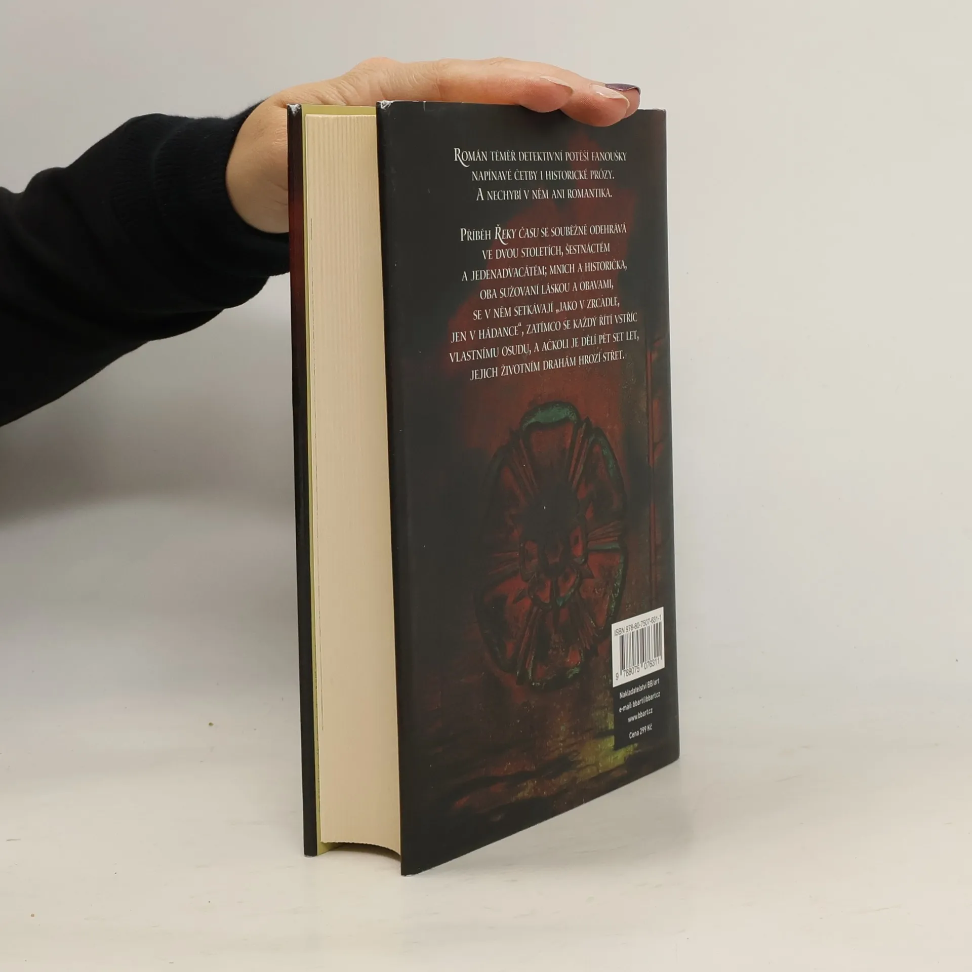 „…čas je řeka se zákruty…“ Strhující mysteriózní román, v němž se dramaticky proplétají dvě dějové linie: osudy hříšného mnicha a tajného žida z bouřlivých časů tudorovské Anglie s příběhem americké historičky Annie, která v Londýně pro židovský nadační fond hledá drahocenné starověké rituální předměty. Bývalá alkoholička v tom vidí životní šanci. Třebaže ji v bytě děsí přízrak - mnich - a hrozí jí neznámé nebezpečí, pátrání nevzdává a naděje na úspěch ještě vzroste, když jí začne pomáhat oblíbený moderátor televizní show, jenž jako by mnichovi z oka vypadl.