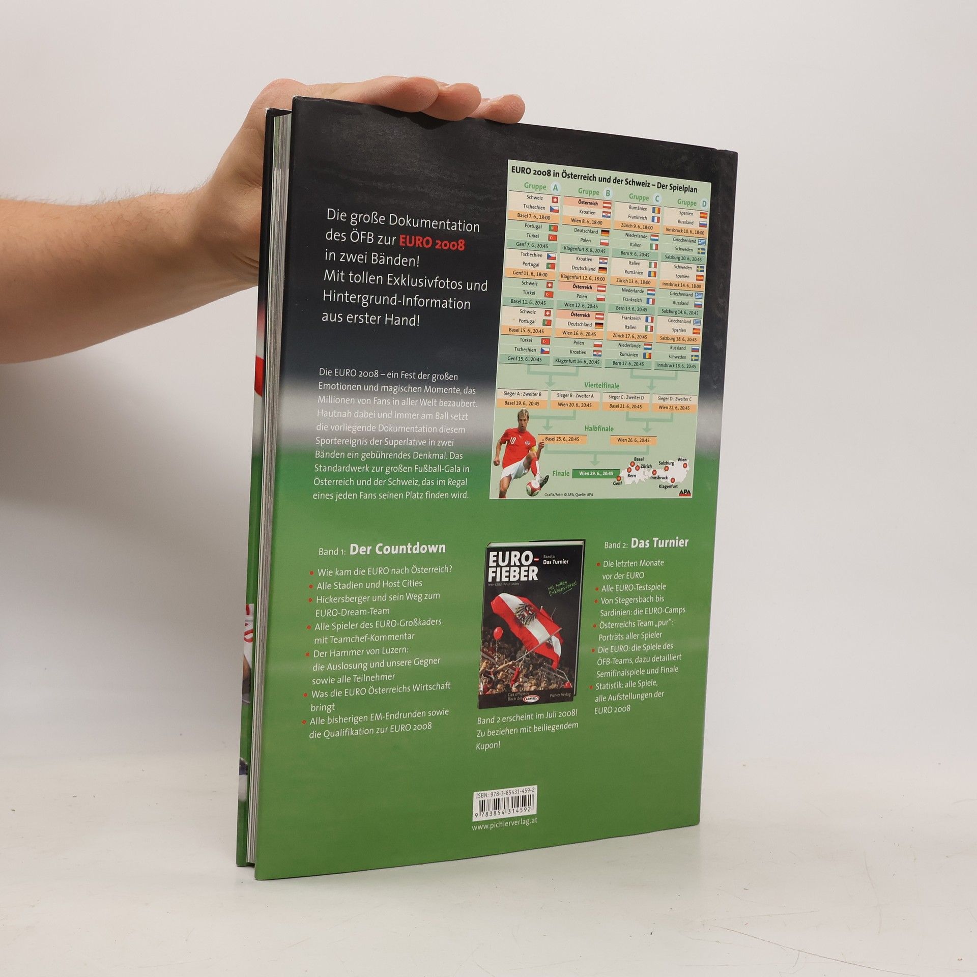Juni 2008, EURO-Zeit: Die Fußballfans erleben wieder emotionale Höhepunkte, während Österreich und die Schweiz im Mittelpunkt des Geschehens stehen. Es wird gefeiert und getrauert, alte und neue Helden werden geehrt, während beeindruckende Spielzüge und Tore die Zuschauer begeistern. Diese Dokumentation in zwei Bänden würdigt das sportliche Großereignis. Band 1 beleuchtet den Weg der beiden Gastgeberländer zur EURO, inklusive des harten Kampfes um die Vergabe und den Bau neuer Stadien. Zudem werden die Gruppengegner Österreichs sowie alle weiteren Teilnehmer des Turniers vorgestellt. Der wirtschaftliche Nutzen für Österreich durch die Rolle als Gastgeber wird ebenfalls thematisiert. Band 2 dokumentiert das Turnier selbst und fängt die sportlichen Höhepunkte dieser einzigartigen Gala ein. Es bietet umfassende Analysen aller Spiele der österreichischen Nationalmannschaft und stellt die Spieler detailliert vor. Exklusives Bildmaterial gewährt Einblicke in Training und Kabine, sodass Fans hautnah dabei sind. Ergänzt wird das Werk durch einen umfangreichen Statistikteil, der alle Mannschaftsaufstellungen und Ergebnisse enthält. Ein unverzichtbares Buch für jeden Fußballfan, das einen besonderen Platz im Regal verdient.