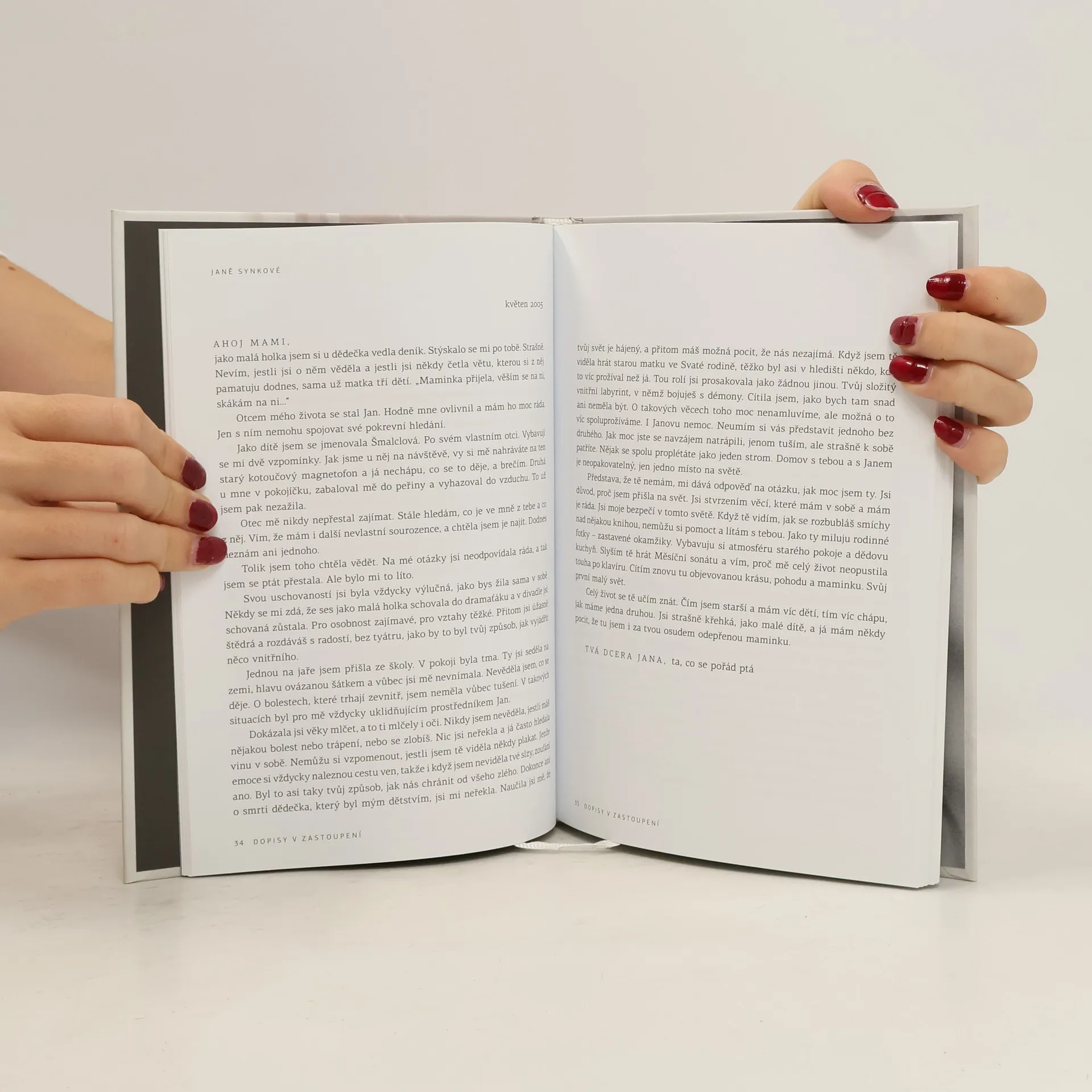 Zuzana Maléřová nás hned úvodním textem, nazvaným Dopis Cyranovi, přivítá ve světě své nové knihy, plné ojedinělých dopisů. Jedny nazvala „cyranovskými“, neboli „dopisy v zastoupení“, což jsou takové, které mnoho let psala jménem někoho jiného. Tak jejím slovem promlouvá dcera k matce, žena k muži, přítel k přítelkyni, bratr k sestře... Dopisy jsou určeny takovým osobnostem, jako jsou Táňa Fischerová, Naďa Konvalinková, Jana Synková, Nina Divíšková, Ivan Trojan, Ladislav Frej, Věra Galatíková, Jaroslav Dušek a další. Druhou část tvoří neodeslané dopisy, které napsala autorka sama za sebe svým nejbližším: rodině, přátelům i těm, kteří už odešli – Otovi Pavlovi, Libuši Geprtové, Stelle Zázvorkové... Tyto texty jsou silným vstupem do autorčina osobního života, ale prostřednictvím jejího otce, maminky, muže a dětí vlastně do prožitků nás všech. Třetí kapitolu představují dopisy ve verších – poetická tečka za cituplnými a dramatickými příběhy v předchozích částech. Součástí výtvarně exkluzivně pojaté knihy jsou fotografické ilustrace Vlada Bohdana z cyklu Stínohry.