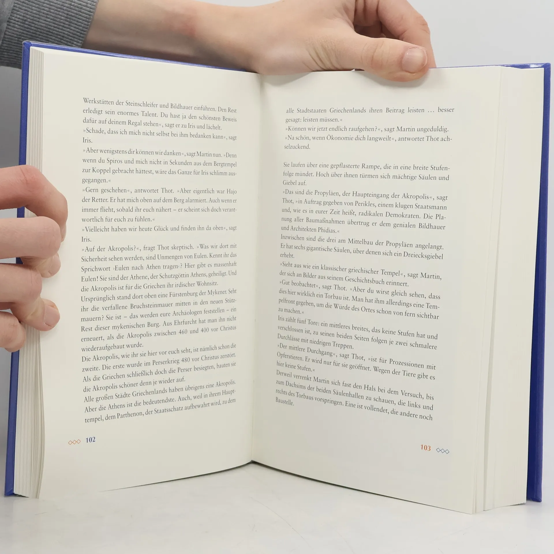 Iris und Martin haben die Nase gestrichen voll. Nicht genug, dass sie ihren Vater nur alle paar Wochen sehen, weil er als Architekt in Dubai arbeitet. Nun ist ihnen auch noch Hajo entwischt, sein Falke. Die Zwillinge können sich für ihre großen Ferien wahrhaft Spannenderes vorstellen, als hinter einem Vogel herzujagen. Doch dann befinden sich die beiden unversehens auf der wundersamsten Reise ihres Lebens. Auf einer Zeitreise durch die Geschichte der Architektur von der Antike bis in unsere heutige Zeit lernen die Zwillinge nicht nur die kulturellen Zusammenhänge verstehen. Sie lernen auch, wie man mit Falken und Göttern umgeht und dass man manchmal etwas aufgeben muss, um es wiederzugewinnen.