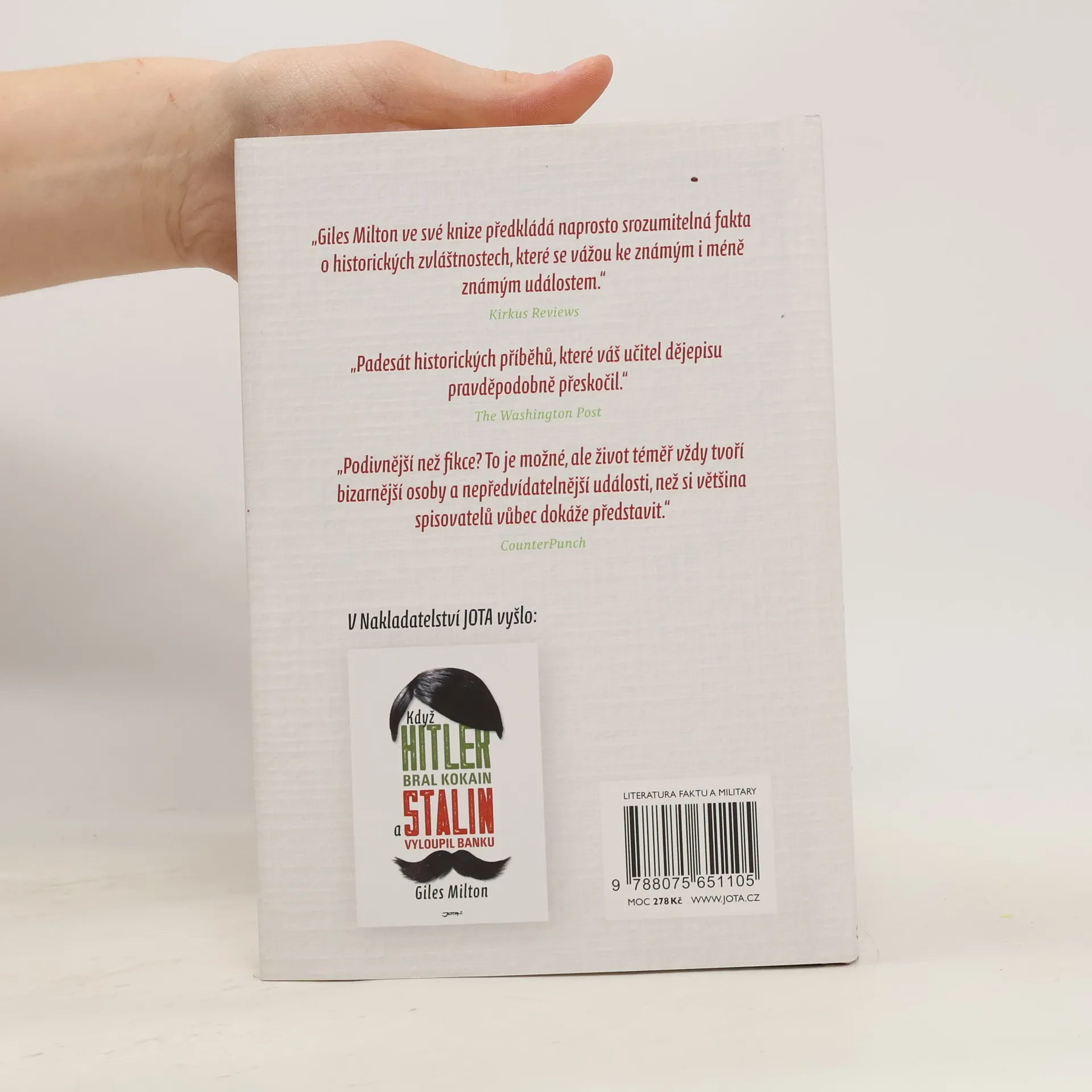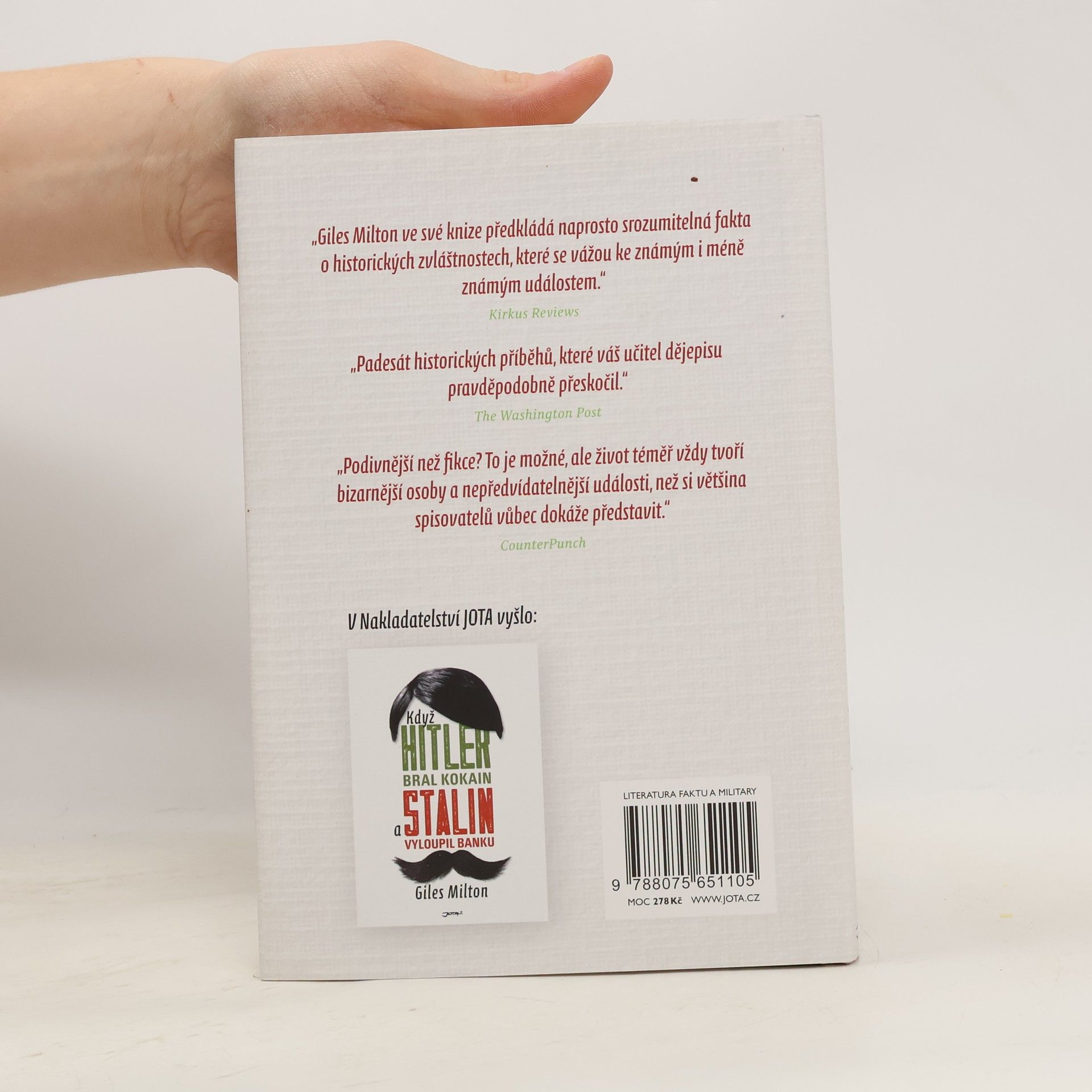 Věděli jste, že se Churchill během druhé světové války připravoval zaútočit na Německo pomocí biologických zbraní, které by zemi učinily neobyvatelnou na několik desetiletí, a obětoval tomu ovci, a to nejednu? Nebo že mozek Vladimira Iljiče Lenina je nakrájený na 30 000 tenkých plátků? Mistrovský vypravěč historických příběhů Giles Milton nám v této knize servíruje další bizarní události z nedávné i vzdálenější historie, mnohdy jen těžko uvěřitelné, ale přesto pravdivé. Slyšeli jste o tom, že se v Londýně stavěla věž, která měla svou výškou předčít pařížskou Eiffelovku? A představte si, že Spojené státy měly svého císaře! Zní to neuvěřitelně, ale přesto je to tak – historie zkrátka píše příběhy, které by nevymyslel ani ten nejkreativnější spisovatel. Druhá část knihy, kterou Milton v originále nazývá Fascinující poznámky z historie pod čarou, tak přináší dalších padesát příběhů, které se čtou jedním dechem, a čtenář se díky nim dozví leccos z toho, co se už nevešlo do hodin dějepisu.