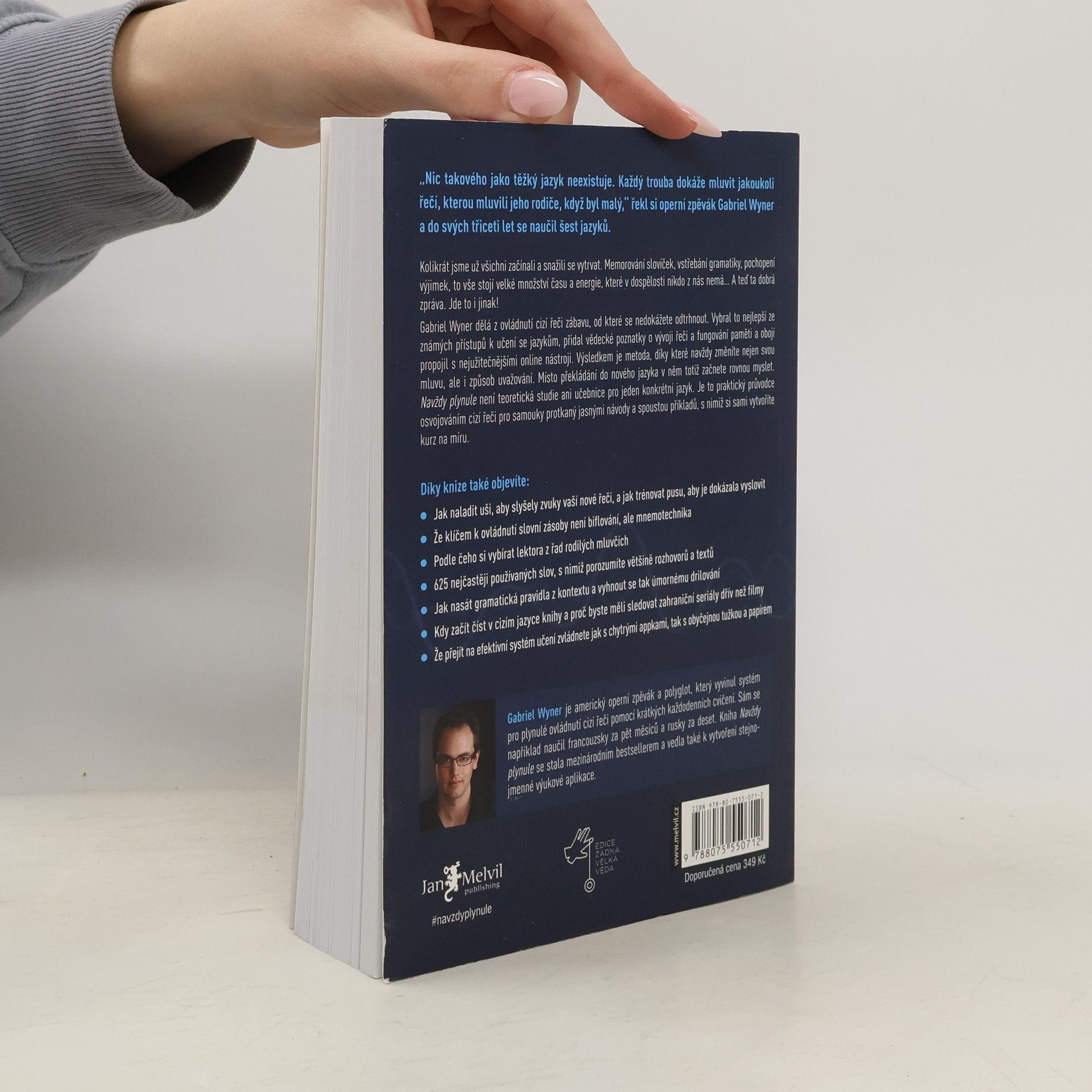 Vzdali jste učení se cizích jazyků? Nemáte čas a ještě k tomu vás úmorná gramatická cvičení nudí? A když už do hlavy něco dostanete, stejně to zase brzy zapomenete? Navždy plynule vaši skepsi vyléčí! Ukáže vám, jak se cizí řeč naučit efektivně, rychle, zábavně a natrvalo. Záchrana, že? Operní pěvec a polyglot Gabriel Wyner není pouhým teoretikem – již ve třiceti letech mluvil plynně šesti jazyky, které se zvládl naučit sám. A každý z nich navíc ovládl v řádu měsíců. Bohaté zkušenosti pak přetavil do nové učební metody pro samouky, která spočívá v krátkých denních trénincích, propojuje to nejužitečnější ze známých lingvistických přístupů s poznatky o fungování mozku a nezapomíná ani na pomoc zdarma dostupných online nástrojů. Navždy plynule vás naučí, jak naladit uši na nové zvuky, jak donutit ústa ke všem novým akrobaciím a jak si kousek po kousku uložit do dlouhodobé paměti vše: od jednoduchých slovíček až po složitá gramatická pravidla. A buďte bez obav, nuda přitom rozhodně nehrozí. Naopak, zábava je klíčem k úspěchu. Takže tentokrát si hru s cizími jazyky užijete a konečně se naučíte vyhrávat! Enfin! Endlich! ?????! Finally! Finalmente! Végre! Endelig! Nareszcie! În cele din urmă! ...